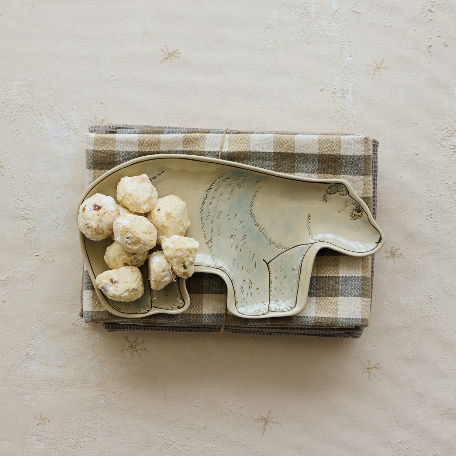 Stoneware Polar Bear Shaped Platter with Wax Relief, White, Black & Blue