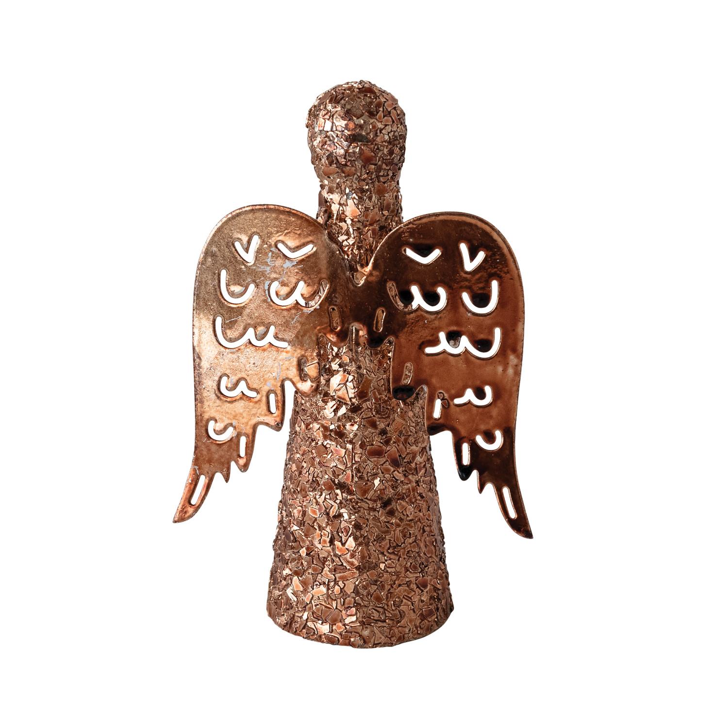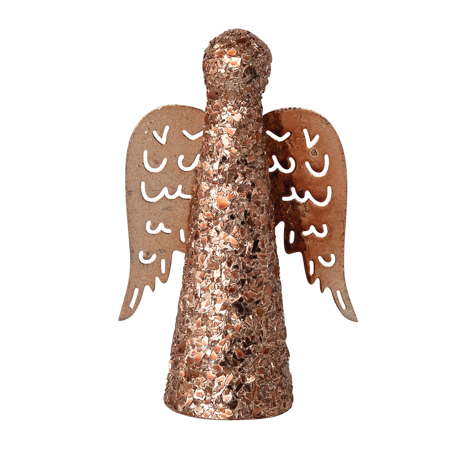 Catalog Name: 3-3/4"L x 2"W x 6"H Metal Angel w/ Cut-Out Wings & Mica Flakes, Copper Finish