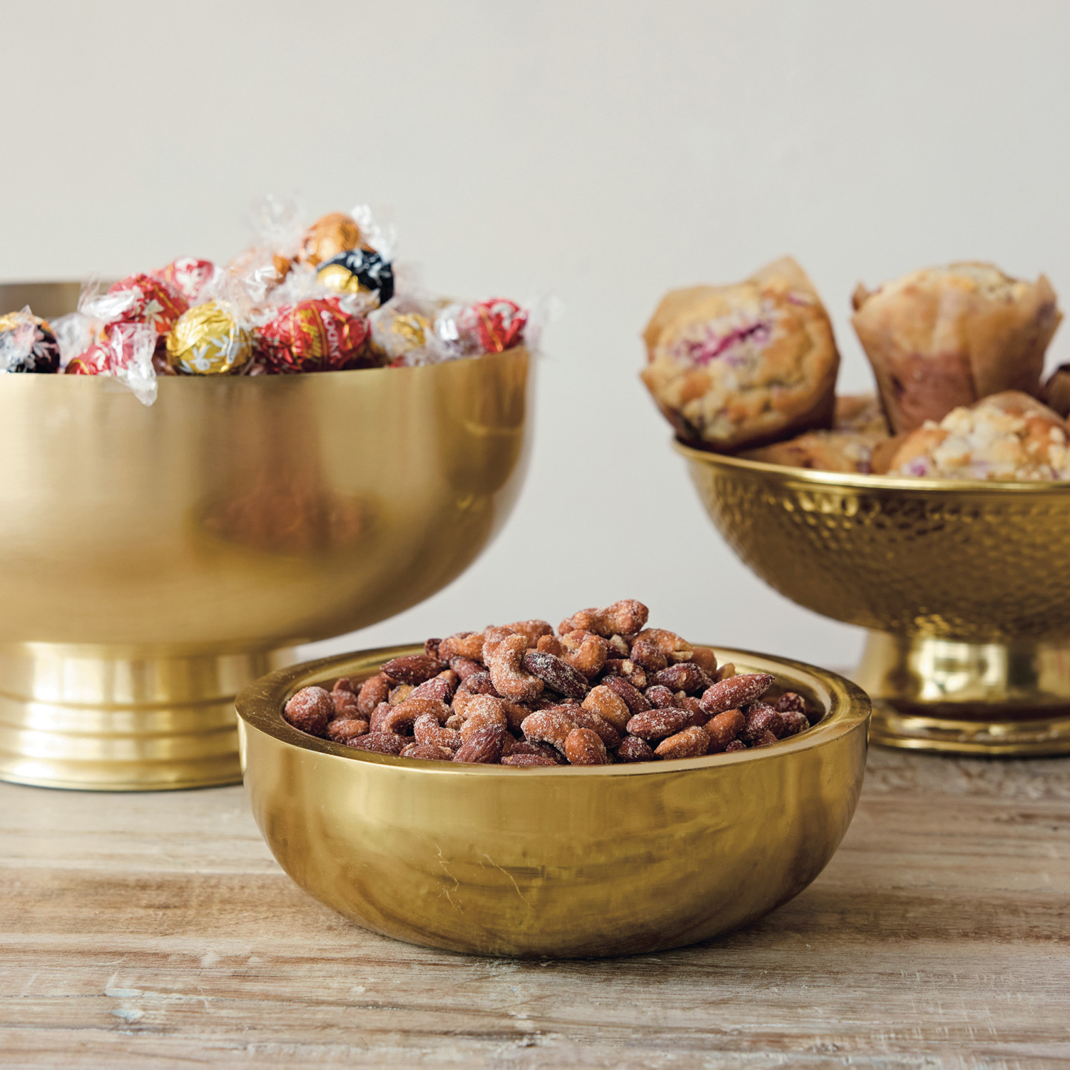 Catalog Name: 8" Round x 2-1/2"H Metal Double Walled Bowl, Antique Gold Finish