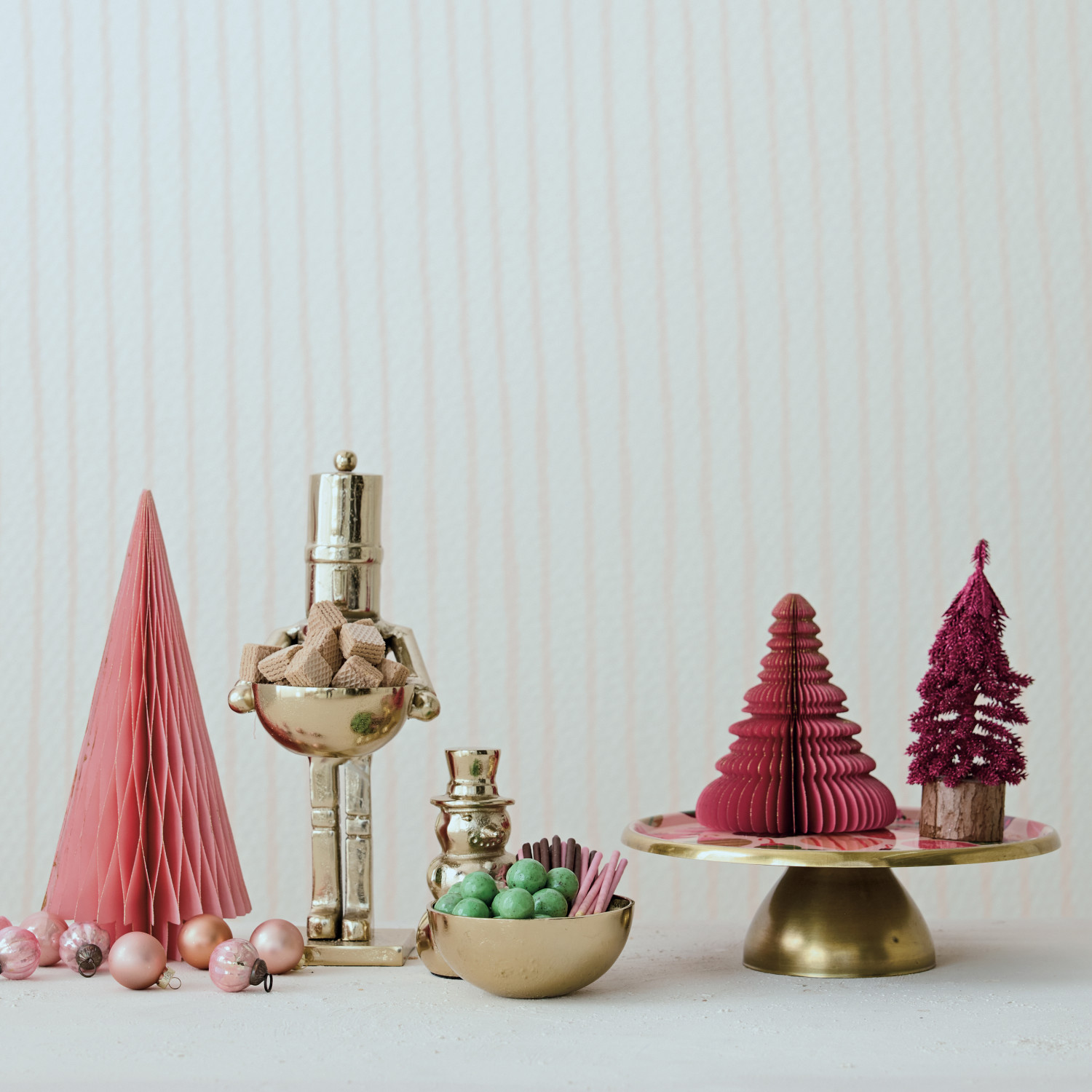 Catalog Name: 11" Round x 3-1/2"H Enameled Metal Pedestal w/ Ornaments Pattern, Multi Color & Gold Finish ©