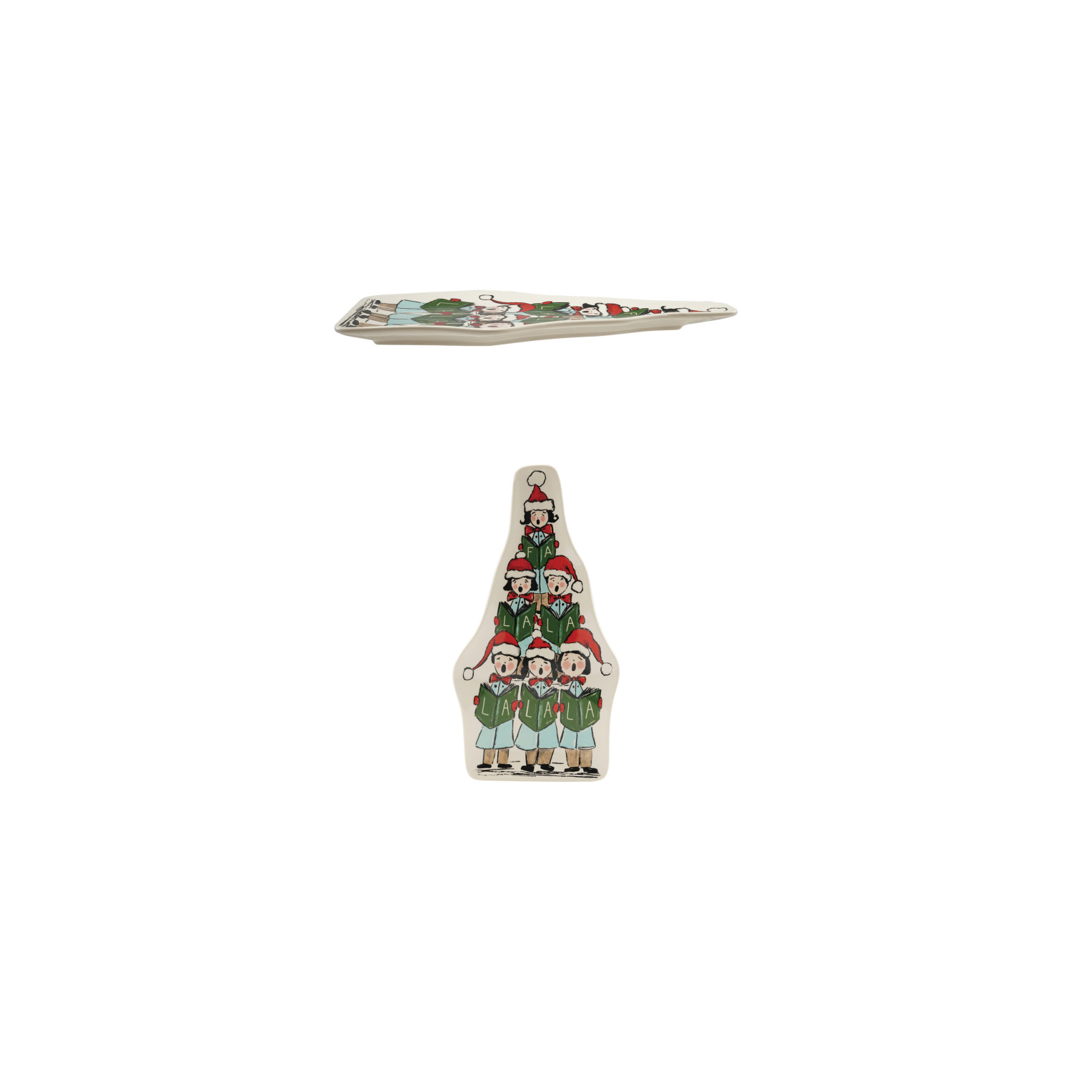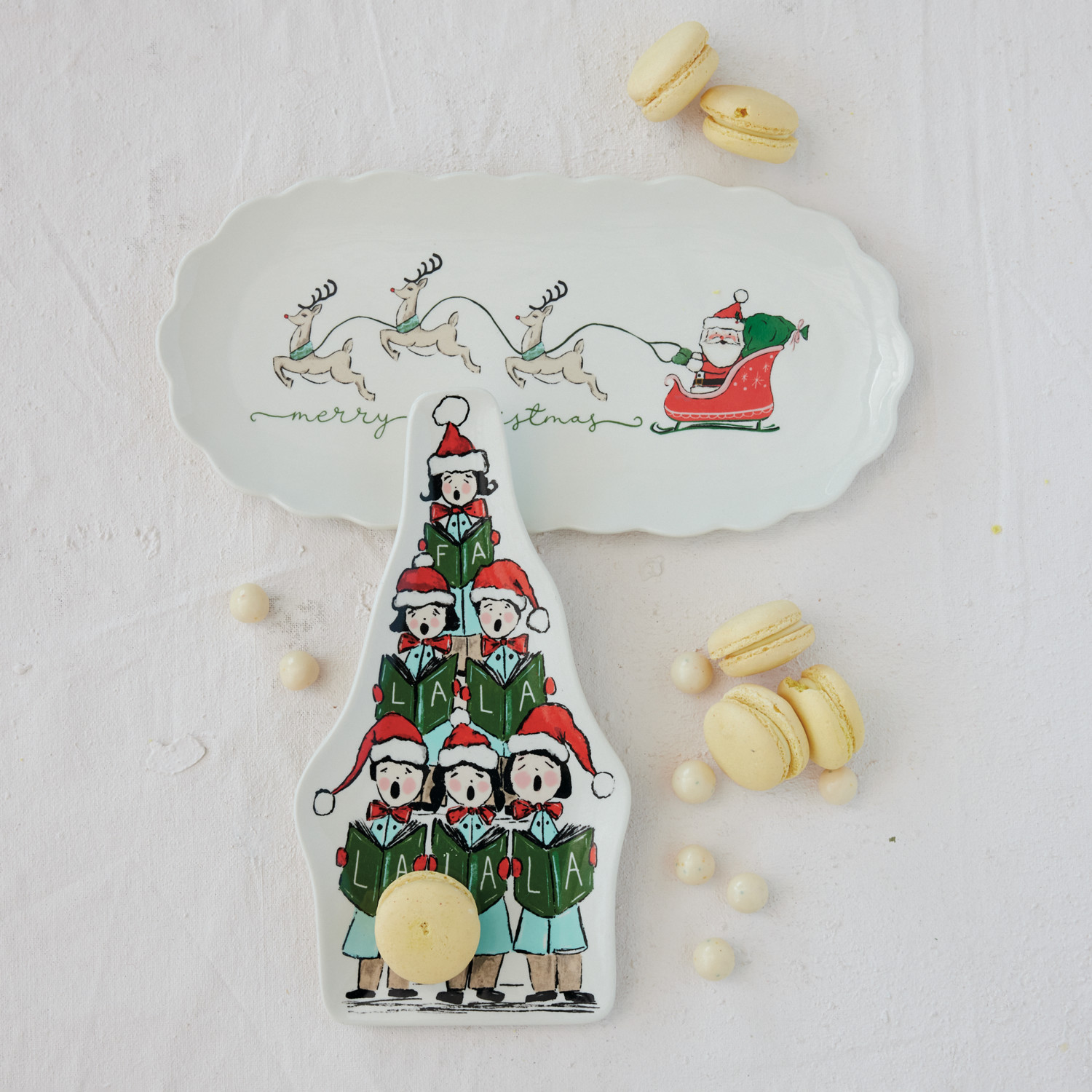 Catalog Name: 10"L x 5"W Stoneware Platter w/ Carolers in Santa Hats "Fa La La…", Multi Color ©