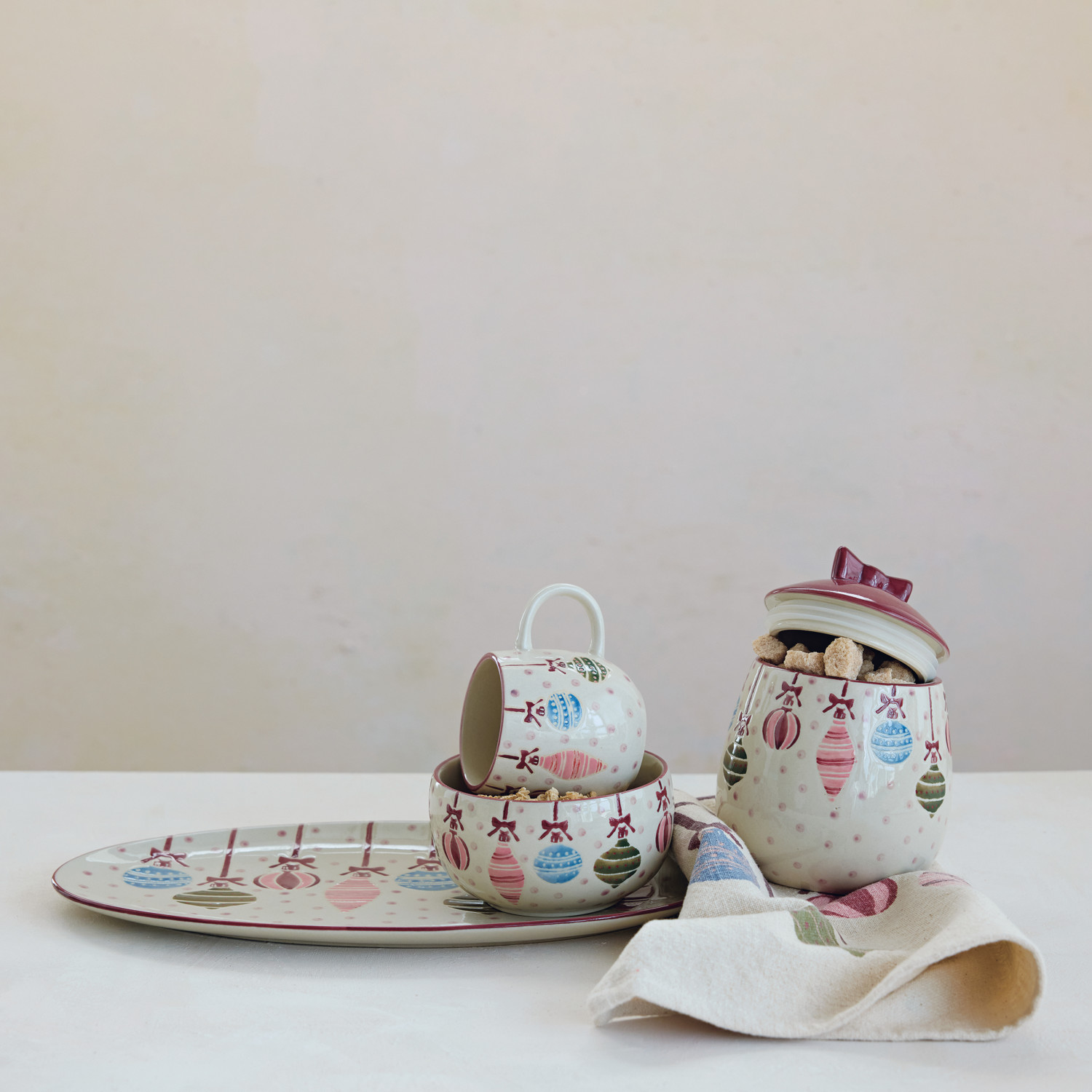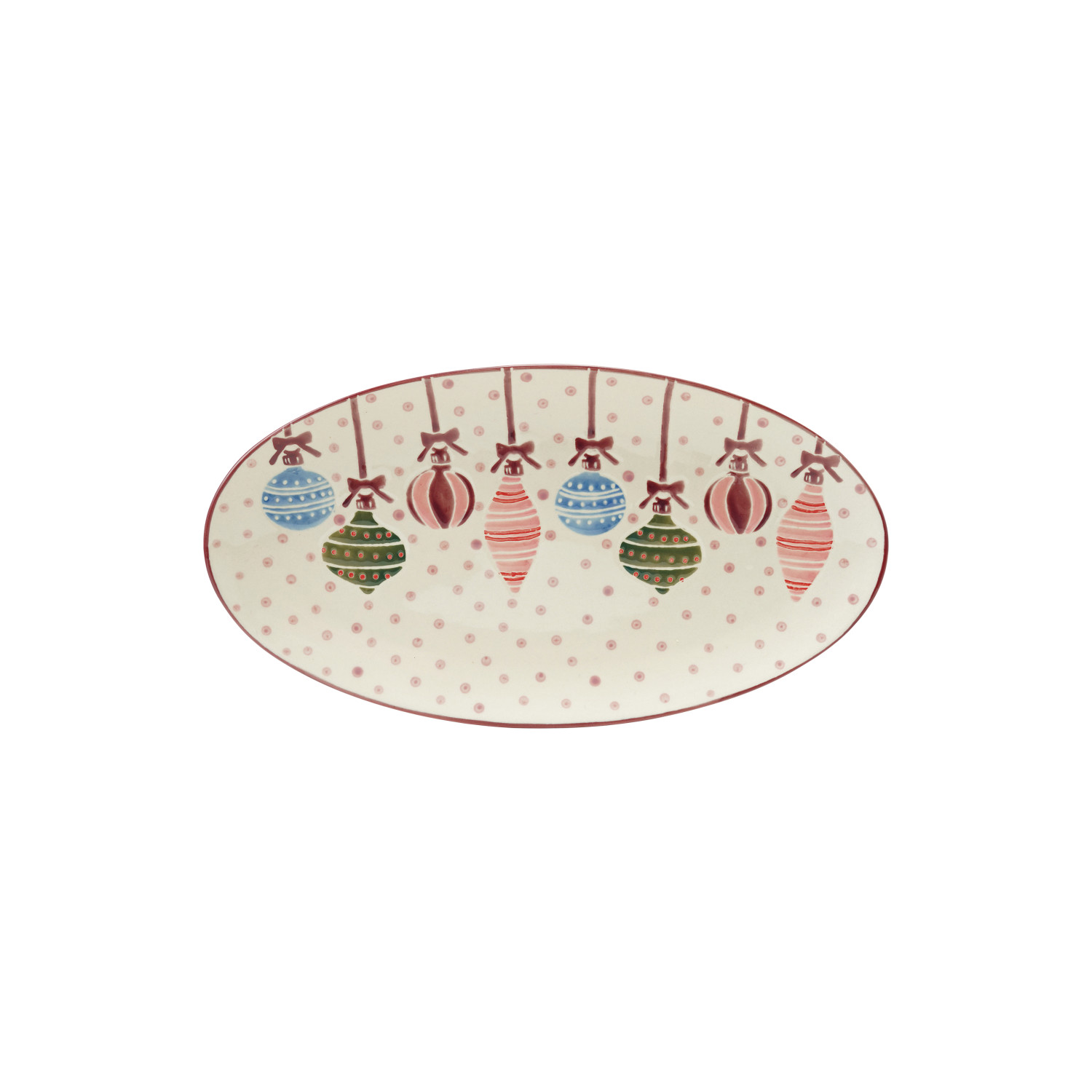 Catalog Name: 12-1/2"L x 7-1/2"W Oval Hand-Painted Stoneware Platter w/ Wax Relief Ornaments & Dots, Multi Color
