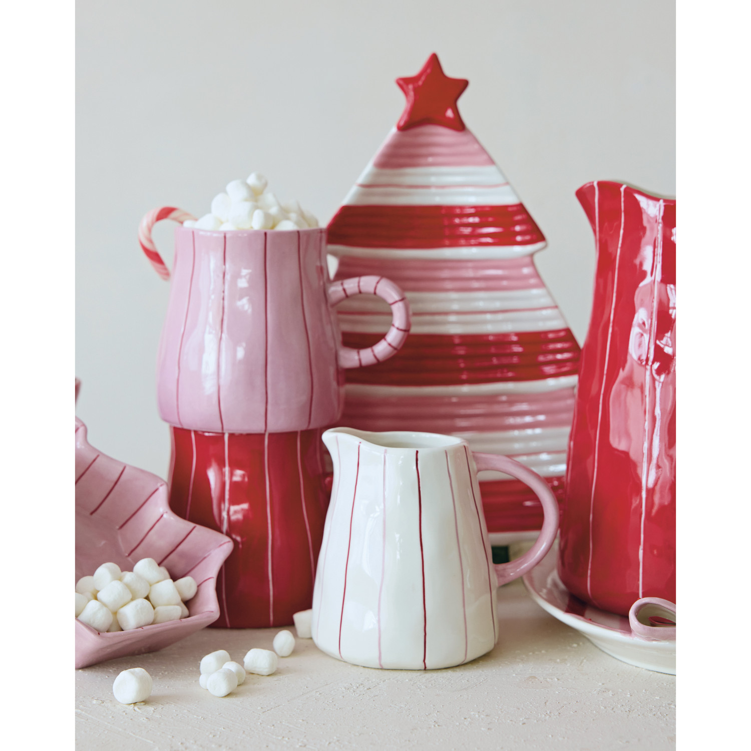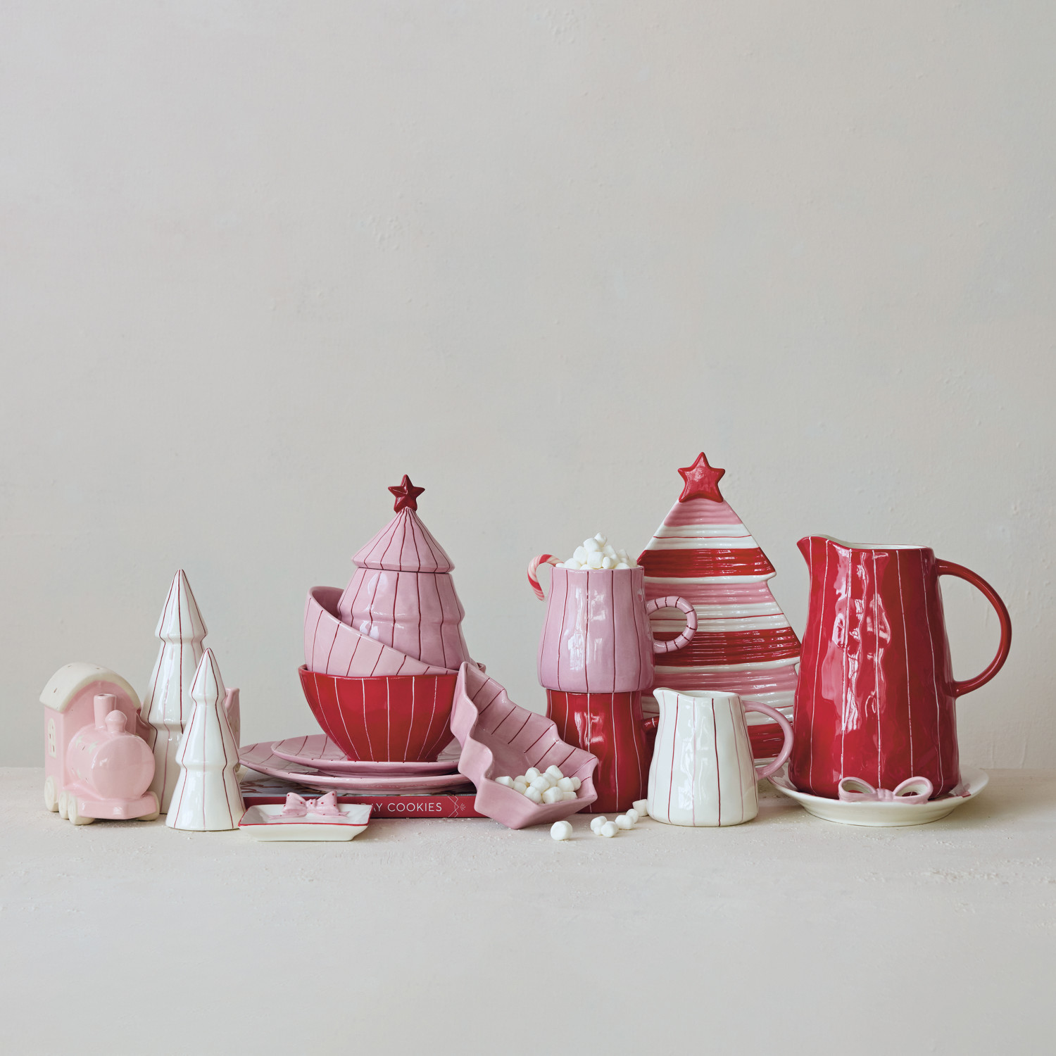 Hand-Painted Stoneware Striped Tree Shaped Platter with Star