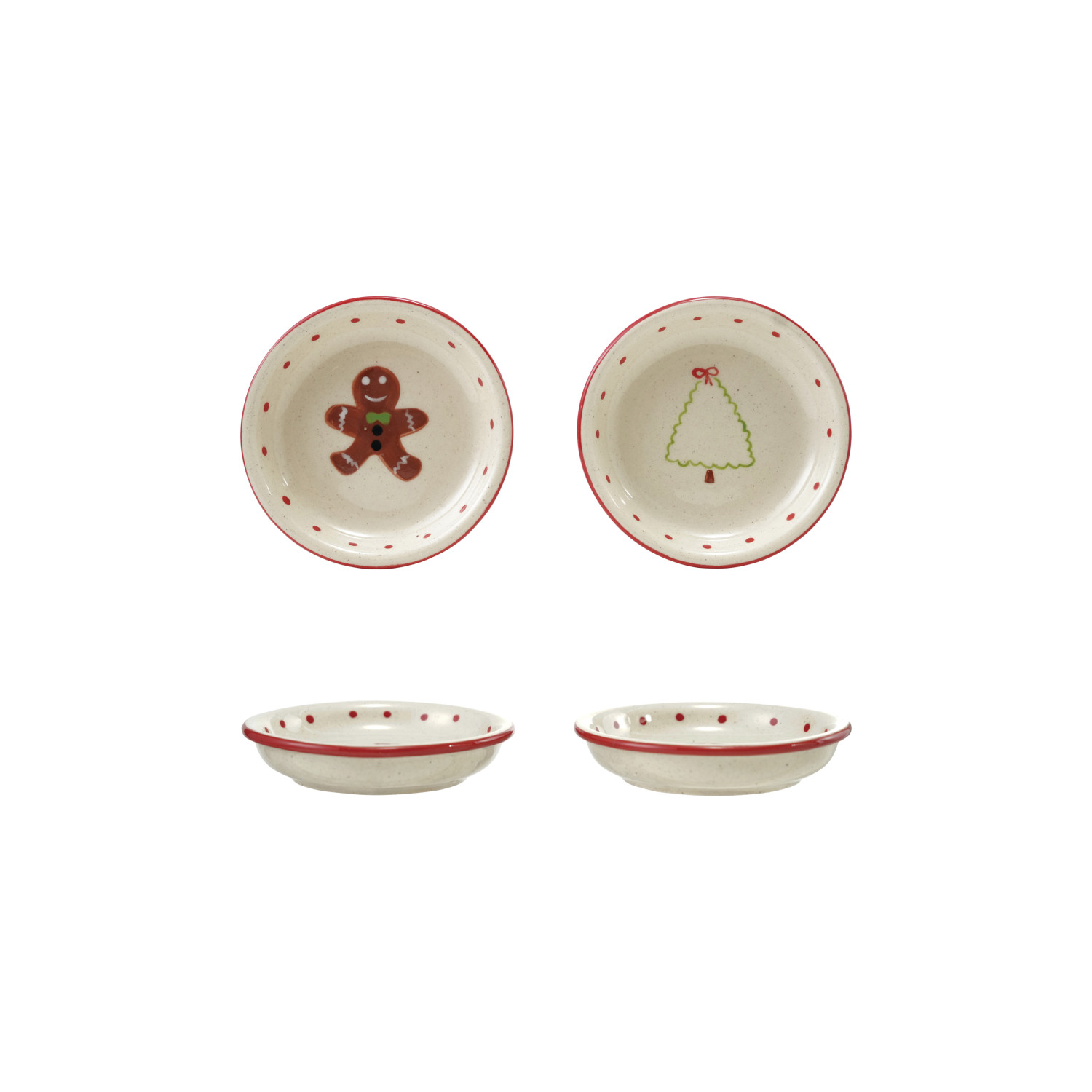 Catalog Name: 4" Round Hand-Painted Stoneware Dish w/ Holiday Icon & Colored Rim, 2 Styles