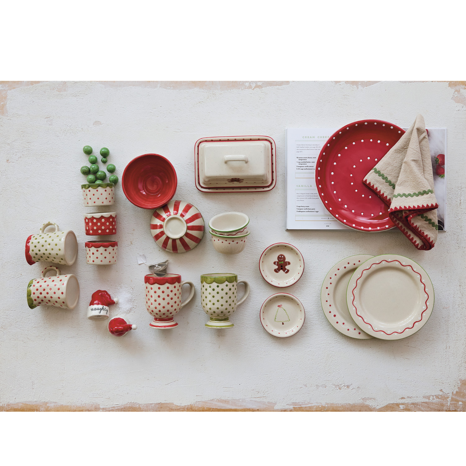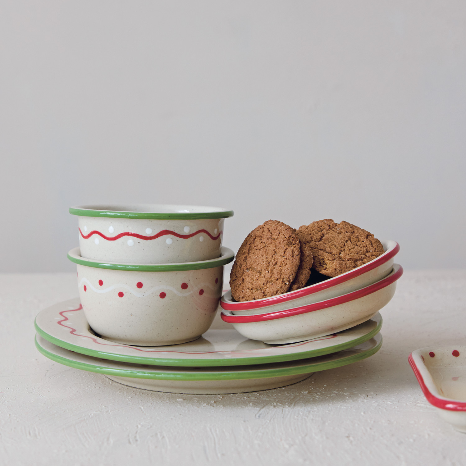 Hand-Painted Stoneware Dish with Holiday Icon & Colored Rim, 2 Styles
