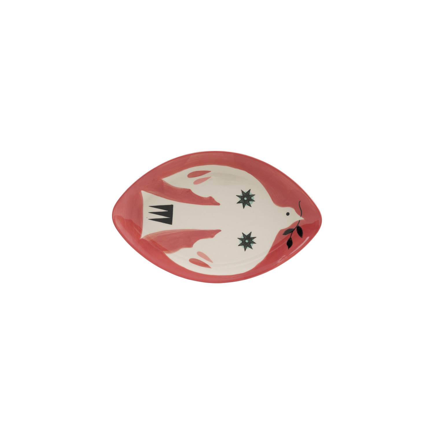 Stoneware Wax Relief Platter with Dove, Red, White & Black ©