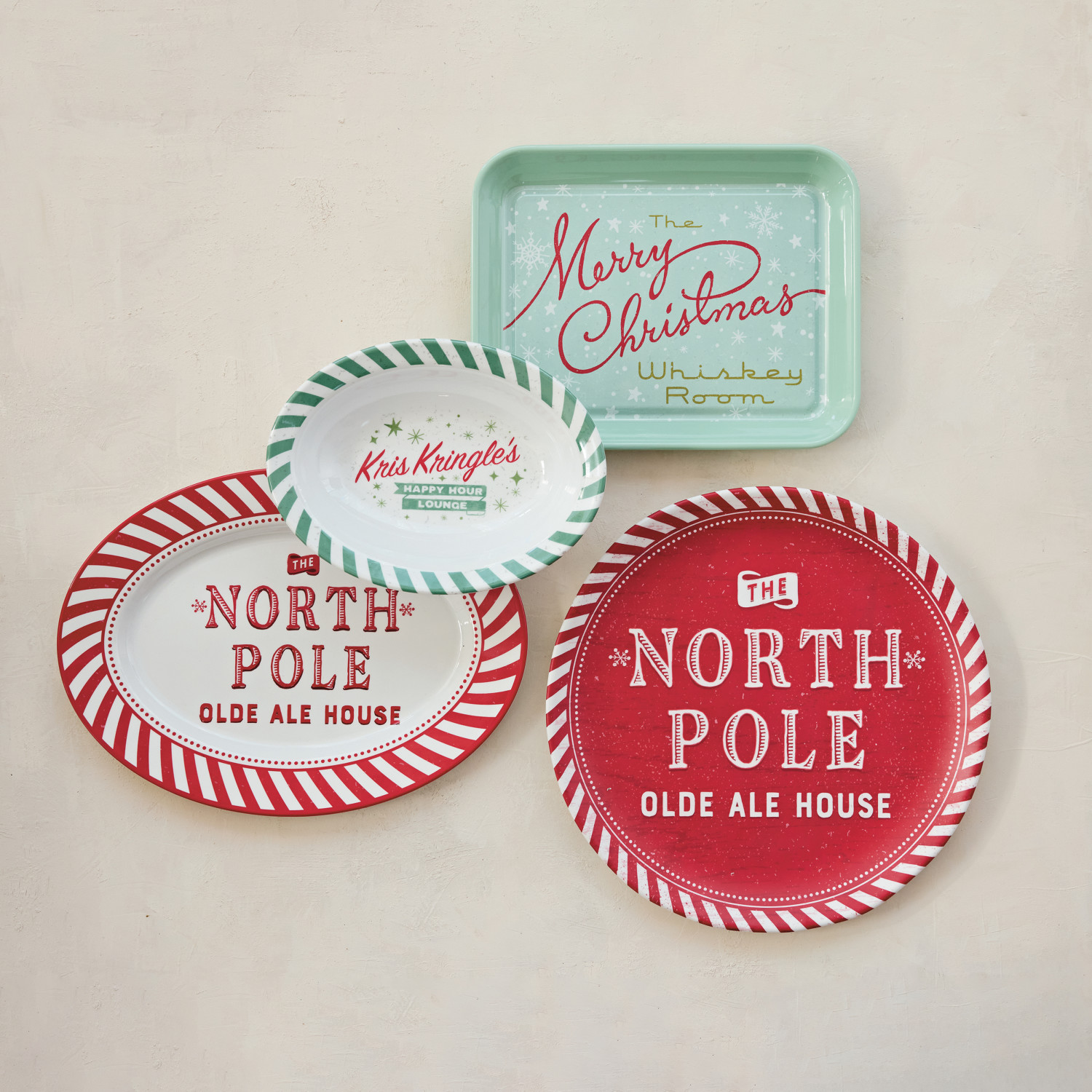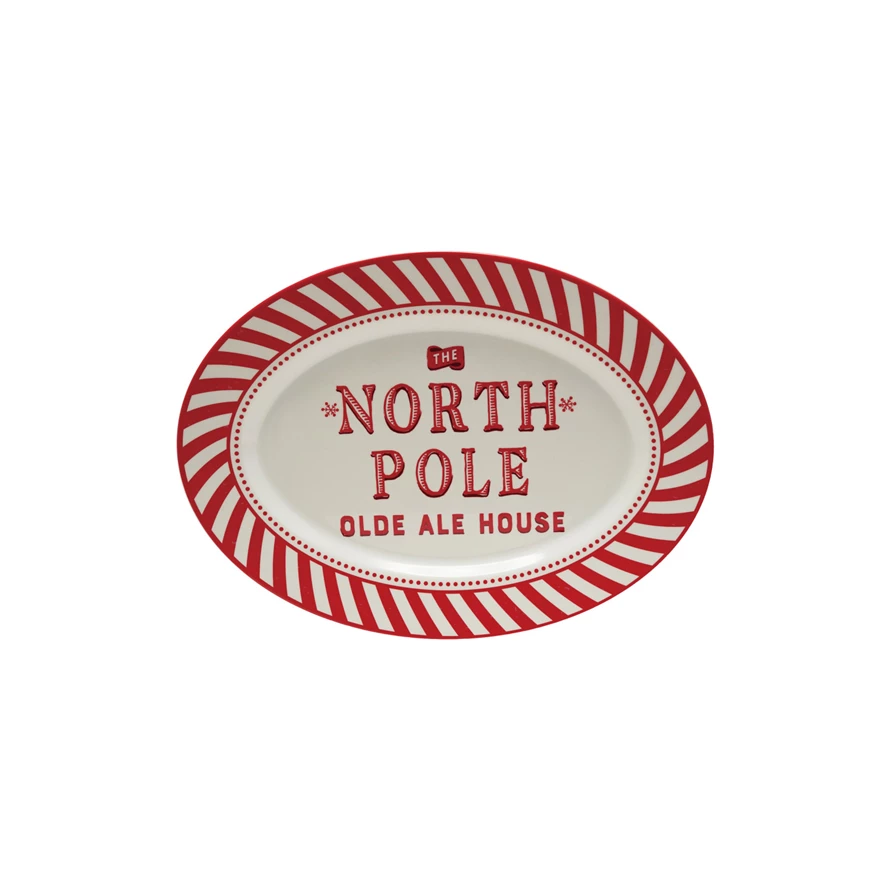 Melamine Platter with Striped Border "The North Pole…", Red & White ©