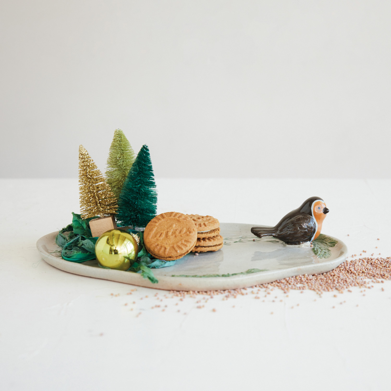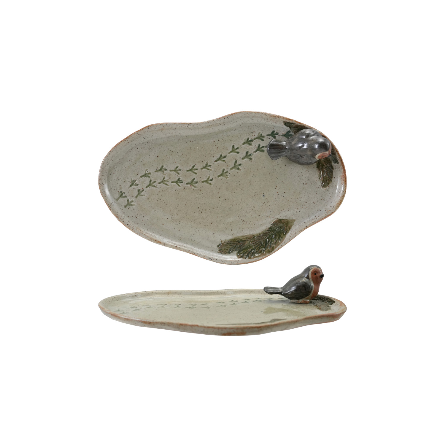 Stoneware Tray with 3D Bird & Bird Tracks (Each One Will Vary)