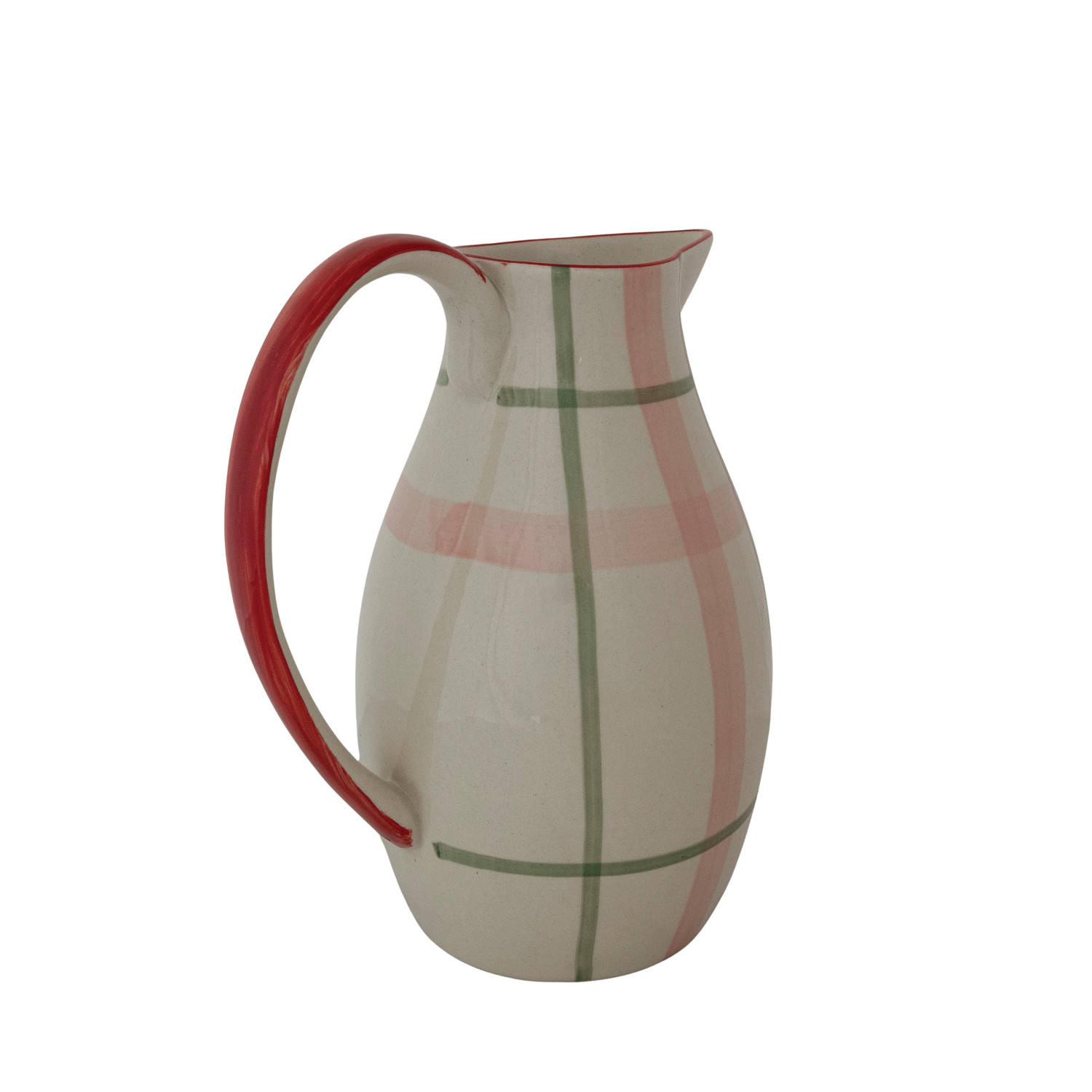 Catalog Name: 8-1/2"L x 6-1/4"W x 10-3/4"H 2-1/2 Quart Hand-Painted Stoneware Pitcher w/ Plaid Pattern, Multi Color (Each One Will Vary)