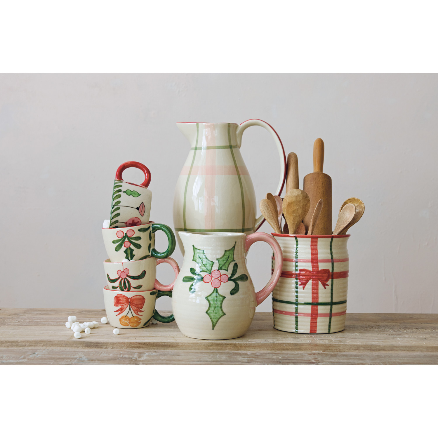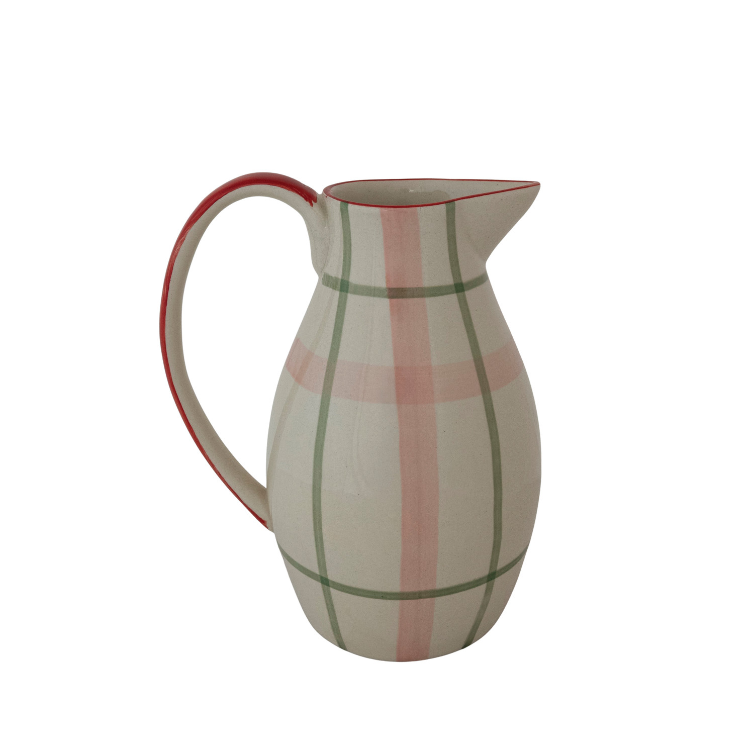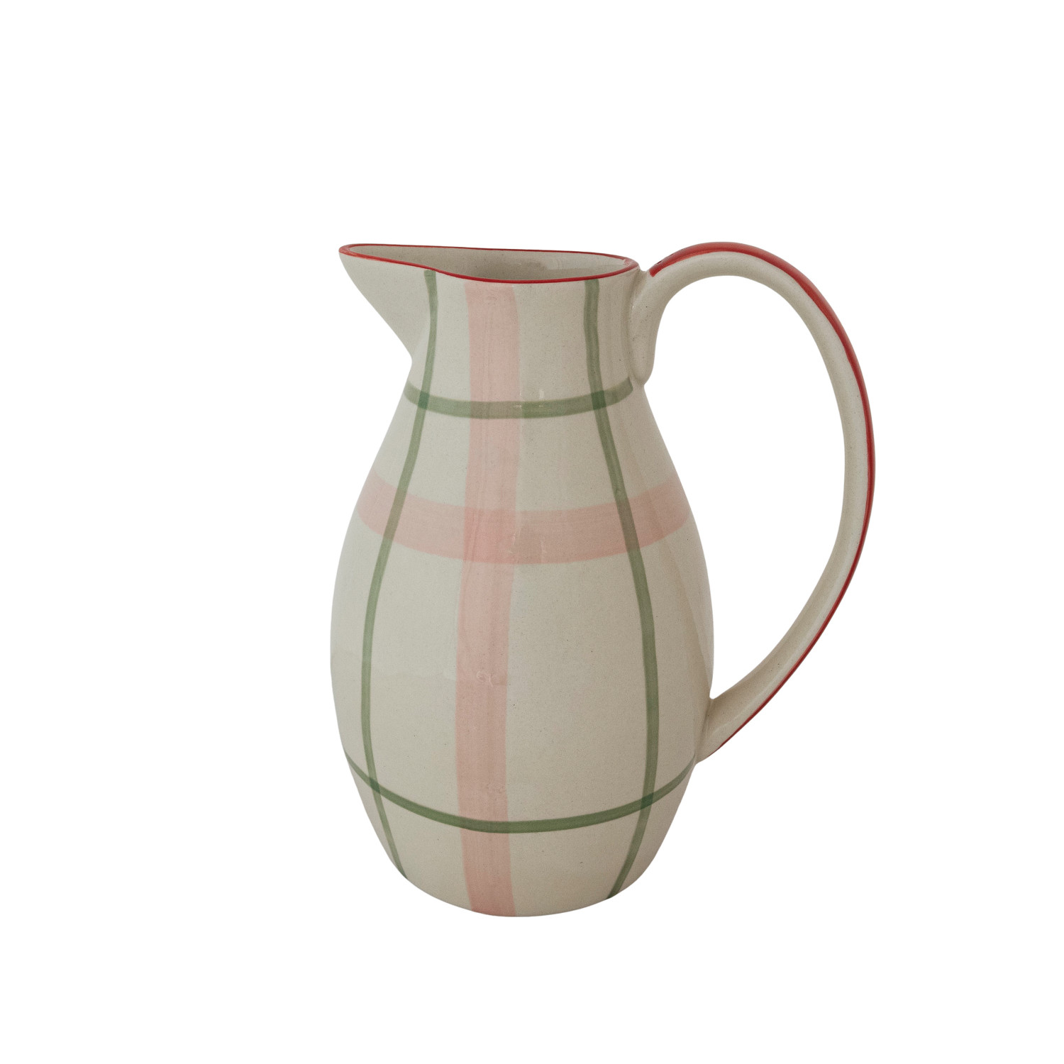2-1/2 Quart Hand-Painted Stoneware Pitcher with Plaid Pattern (Each One Will Vary)