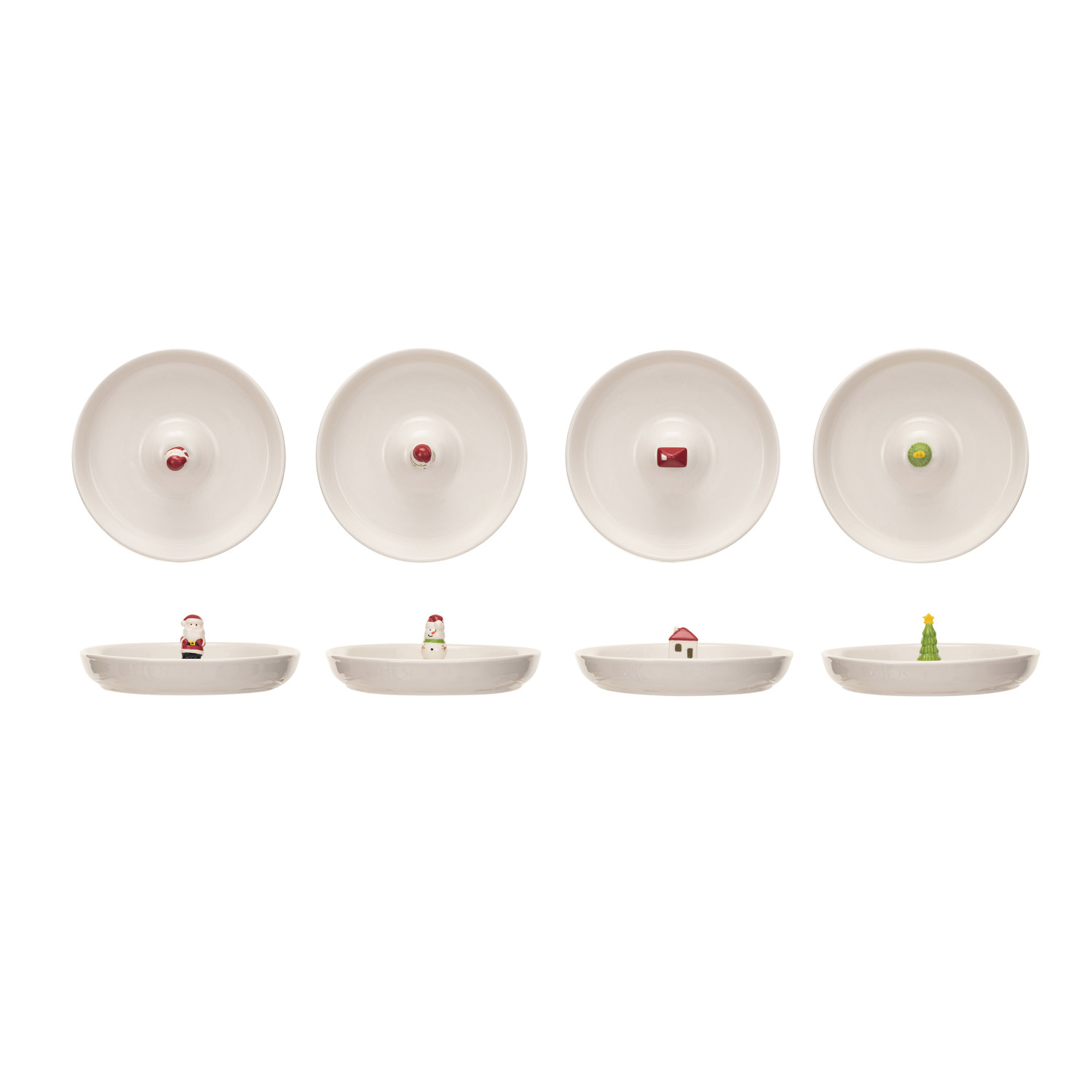 Catalog Name: 8" Round Stoneware Dish w/ Holiday Figure, Multi Color, 4 Styles
