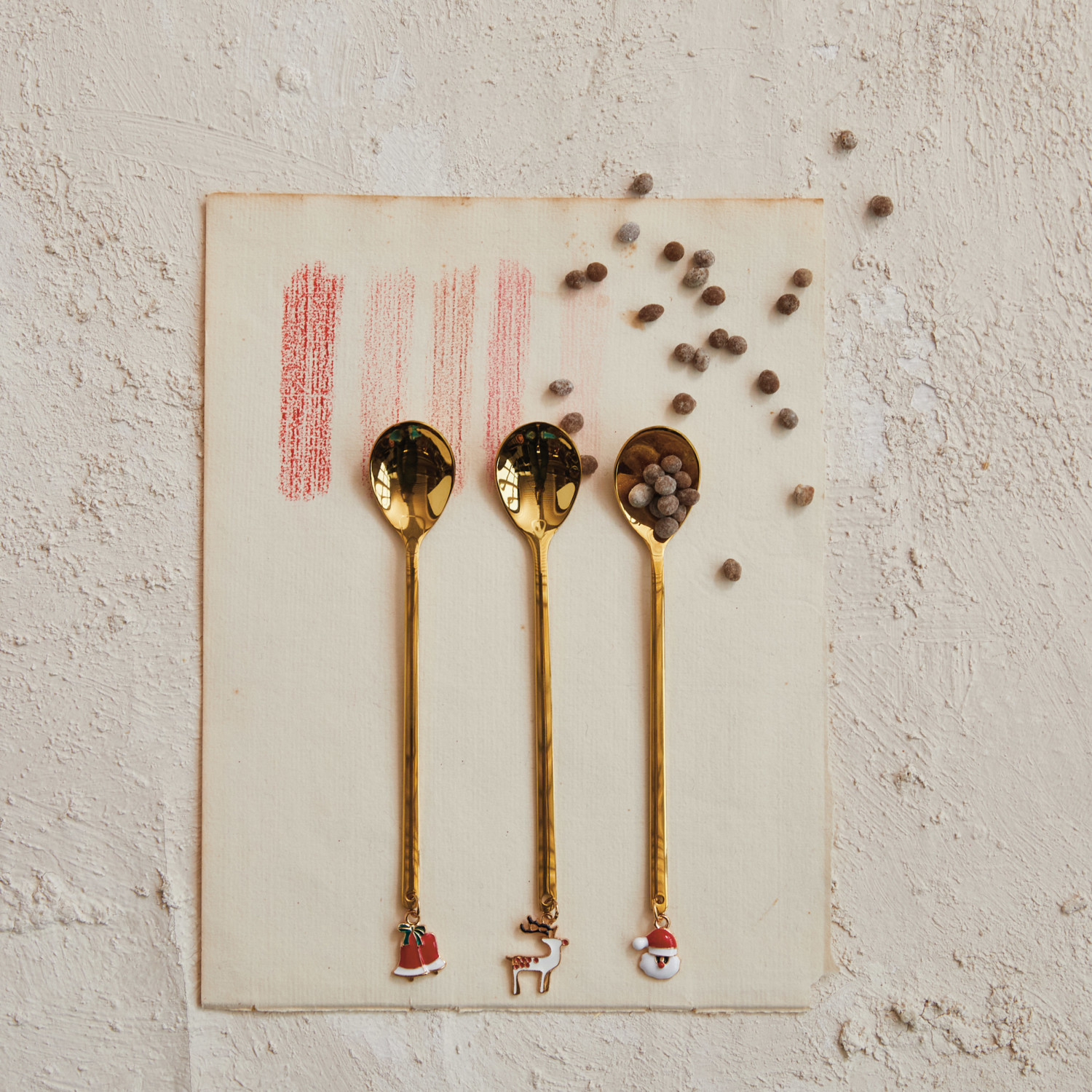 Stainless Steel Spoon w/ Holiday Charm, Gold Finish, 3 Styles
