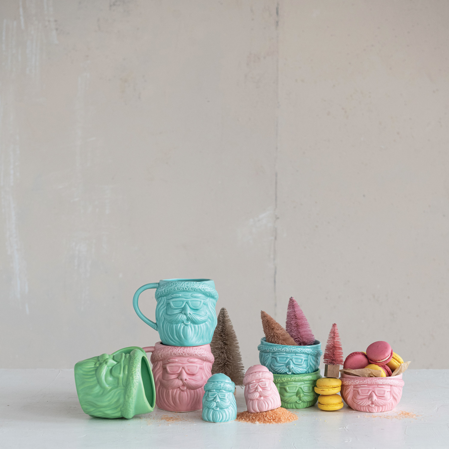 18 oz. Stoneware Santa Head Shaped Mug, 3 Matte Colors