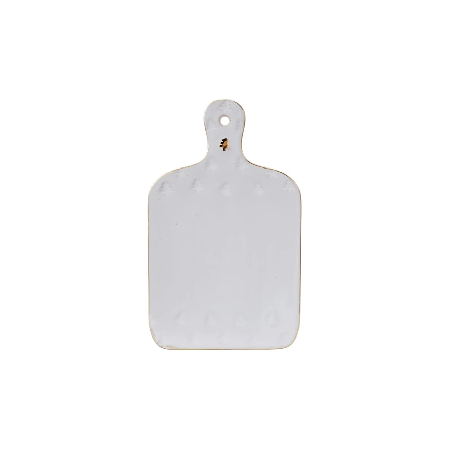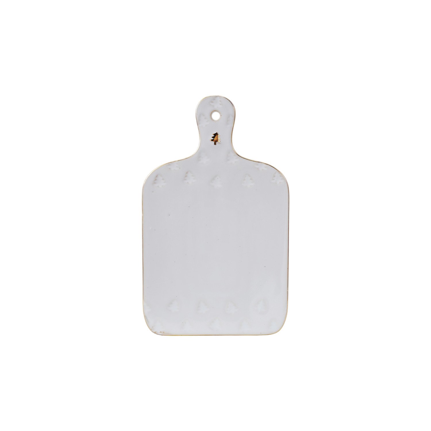Catalog Name: 10-1/4"L x 6"W Debossed Stoneware Cheese/Cutting Board w/ Trees & Gold Electroplating, Reactive Glaze, White (Each One Will Vary)