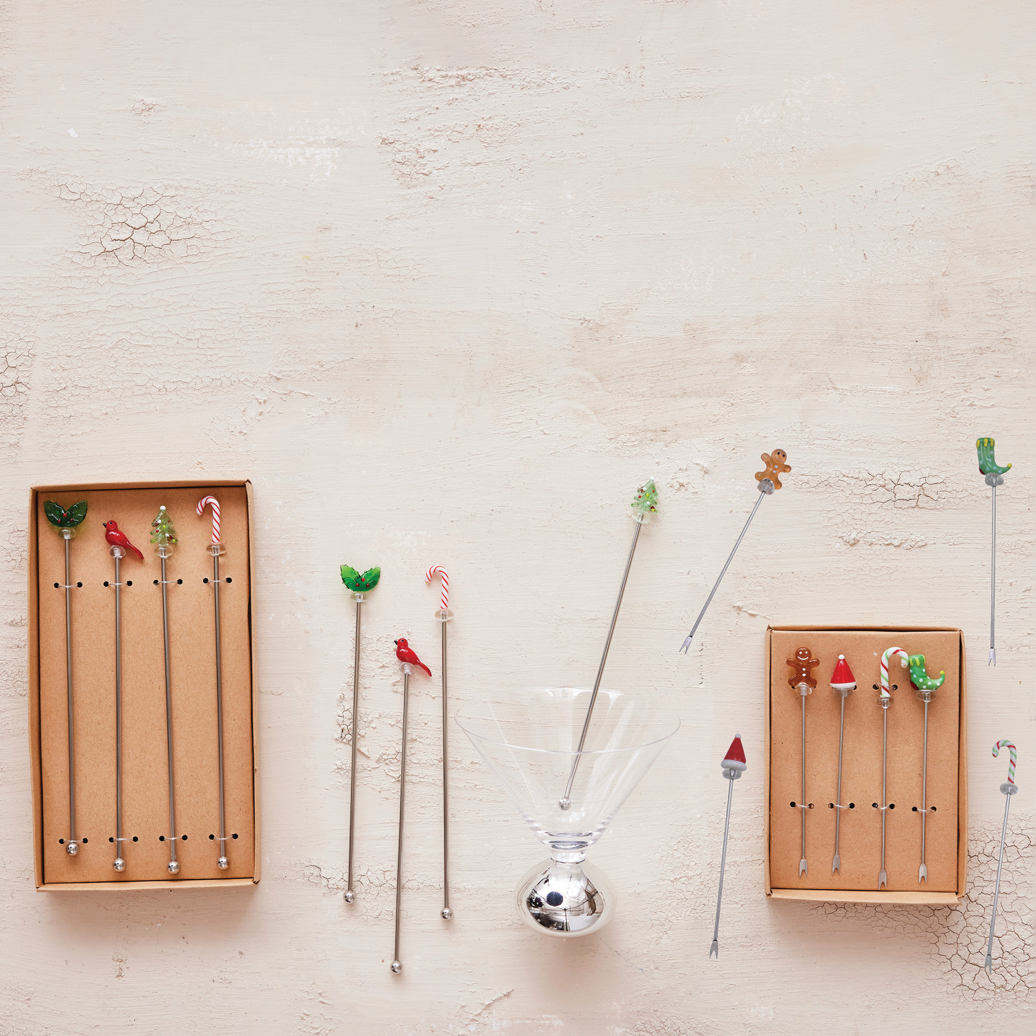 Appetizer Picks with Hand-Blown Glass Icons, Boxed Set of 4