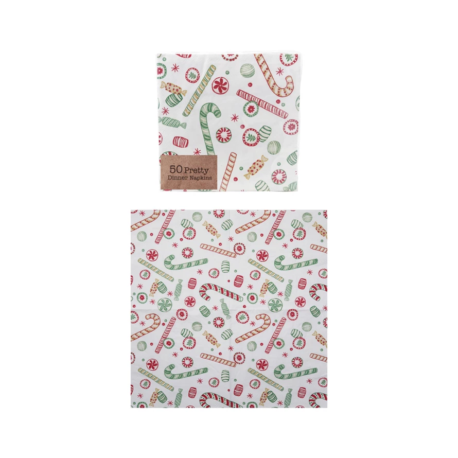 Catalog Name: 6-1/2" Square Paper Napkins w/ Holiday Candy Pattern, Multi Color (Contains 50 Folded Pieces) ©