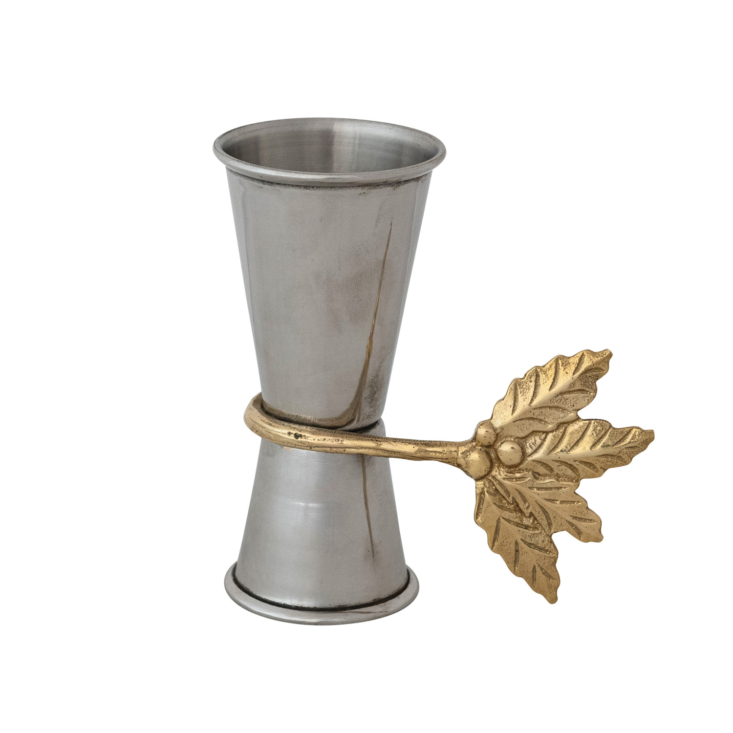 Stainless Steel Jigger with Brass Holly Leaves & Berries Shaped Handle