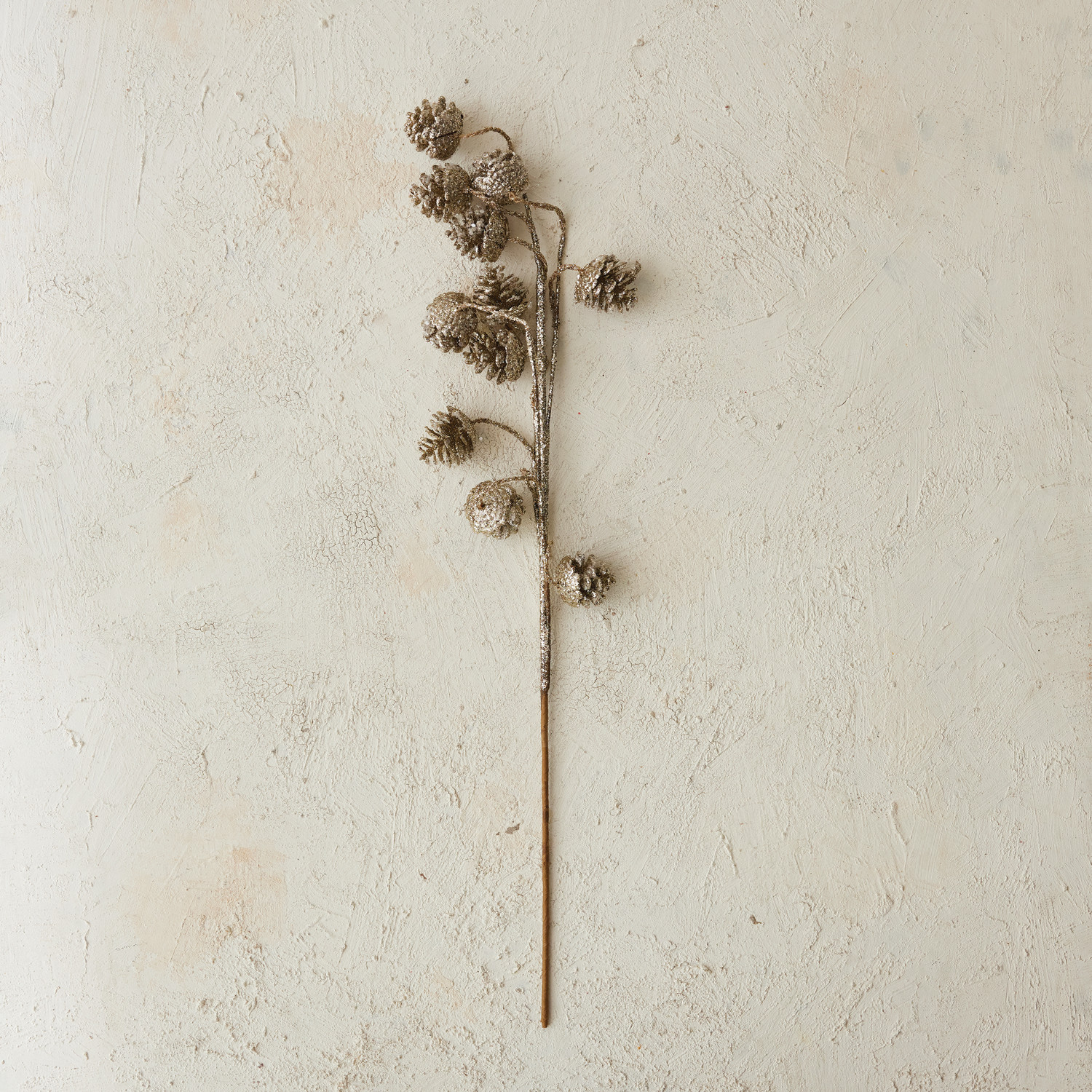 Catalog Name: 29"L Plastic Pinecone Stem w/ Glitter, Champagne Finish