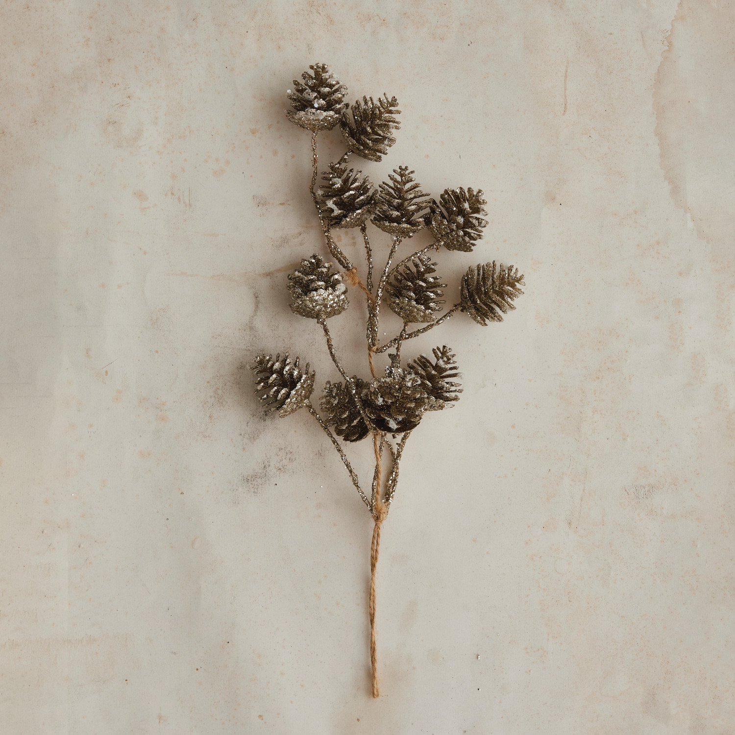 16"H Hanging Plastic Pinecone Bunch with Glitter, Champagne Finish