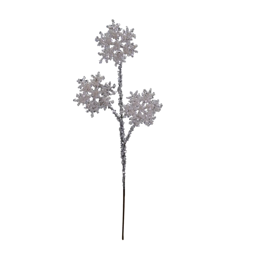 Catalog Name: 24"H Snowflake Stem w/ Glitter & Faux Pearls, Ice Finish