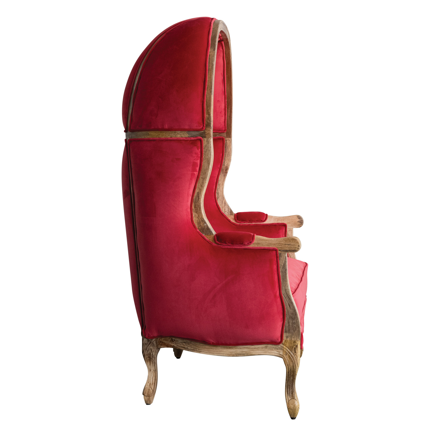 Catalog Name: 41"W x 31"D x 62"H Velvet Upholstered Balloon Chair w/ Hand-Carved Mango Wood Frame, Berry Color & Natural, Truck Ship