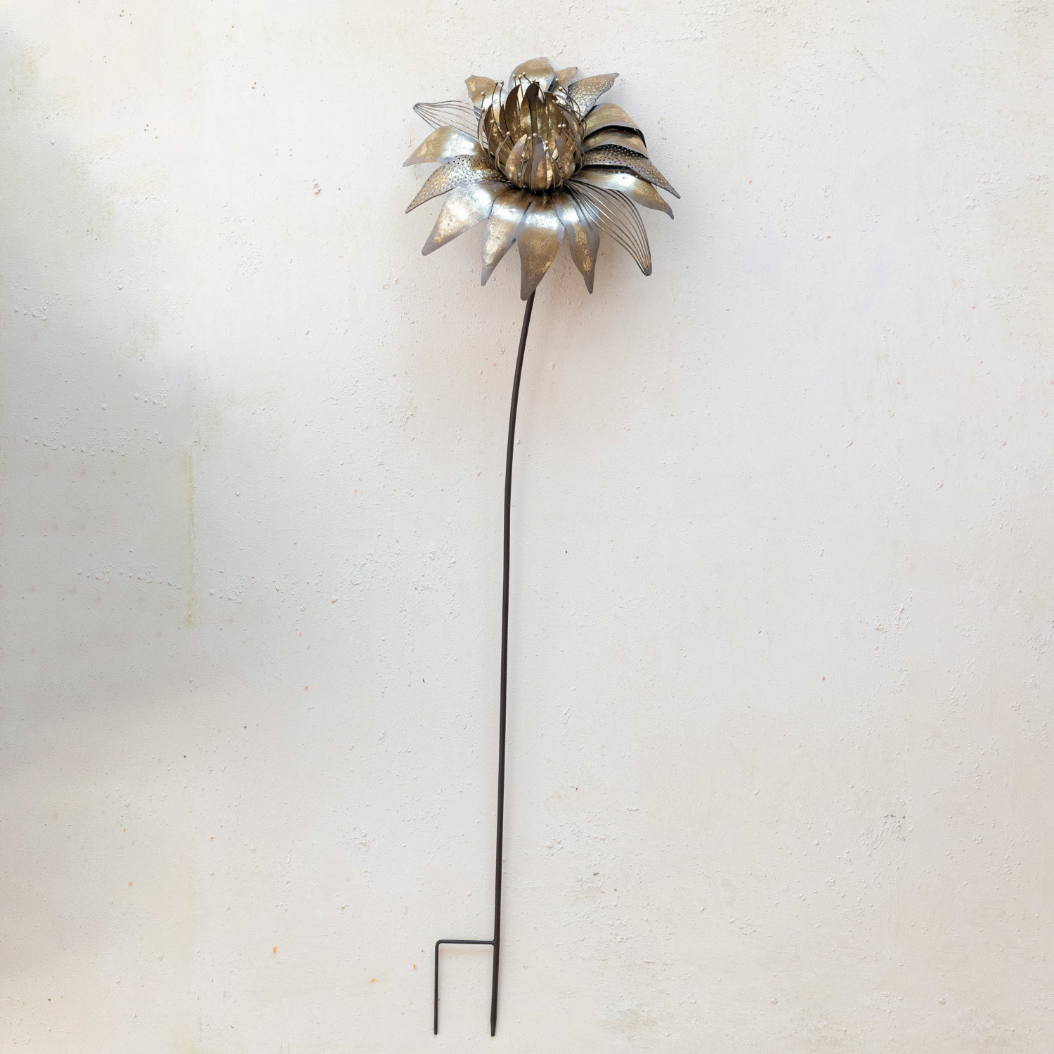 Metal Flower Stake, Brushed Gold Finish, Brown
