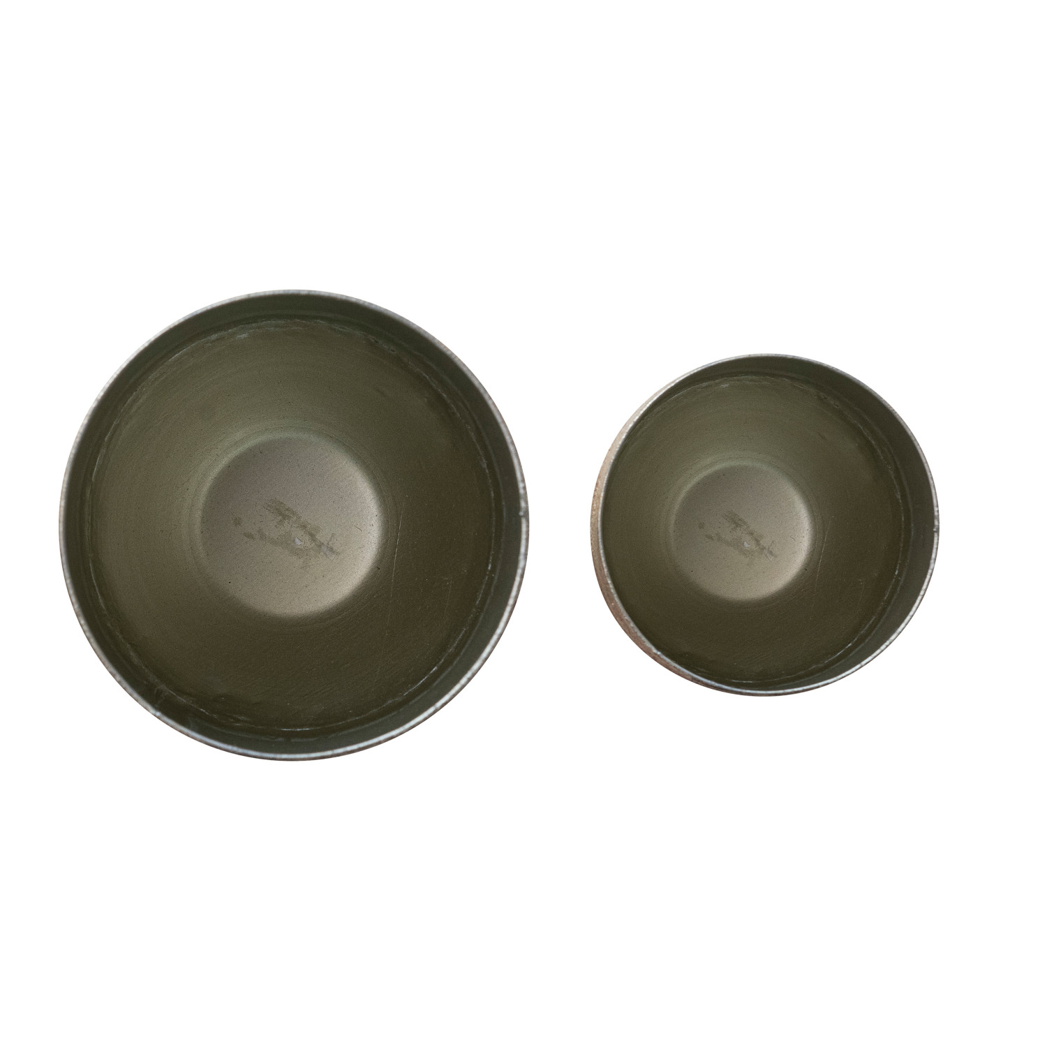 Catalog Name: 6" Round x 5-1/2"H & 5" Round x 4-1/2"H Metal Planters, Tarnished Silver Finish, Set of 2 (Holds 5" & 4" Pots)