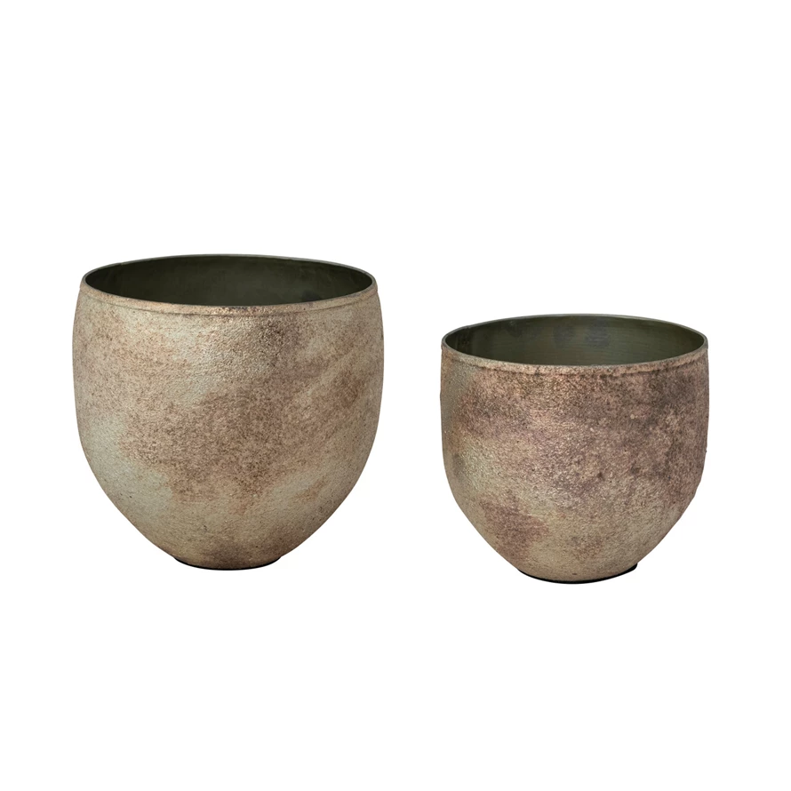 Metal Planters, Tarnished Silver Finish, Set of 2 (Holds 5" & 4" Pots)