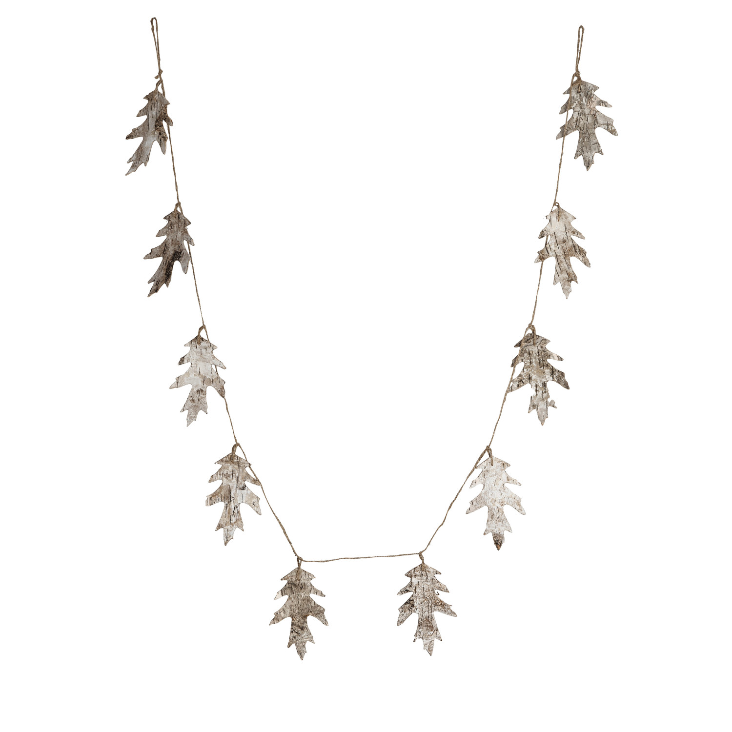 Birch Bark Oak Leaf Shaped Garland w/ Jute Cord, Natural