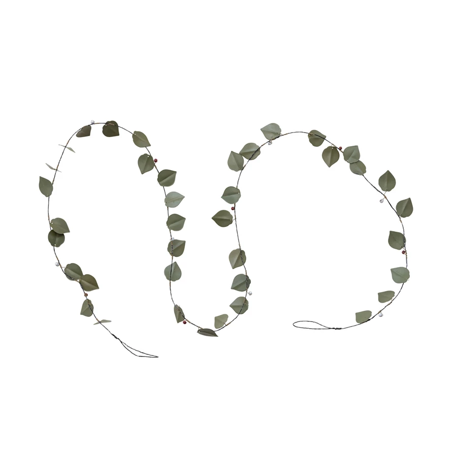 72"L x 1-1/2"H Metal & Wire Leaf Garland, Green, Red & White