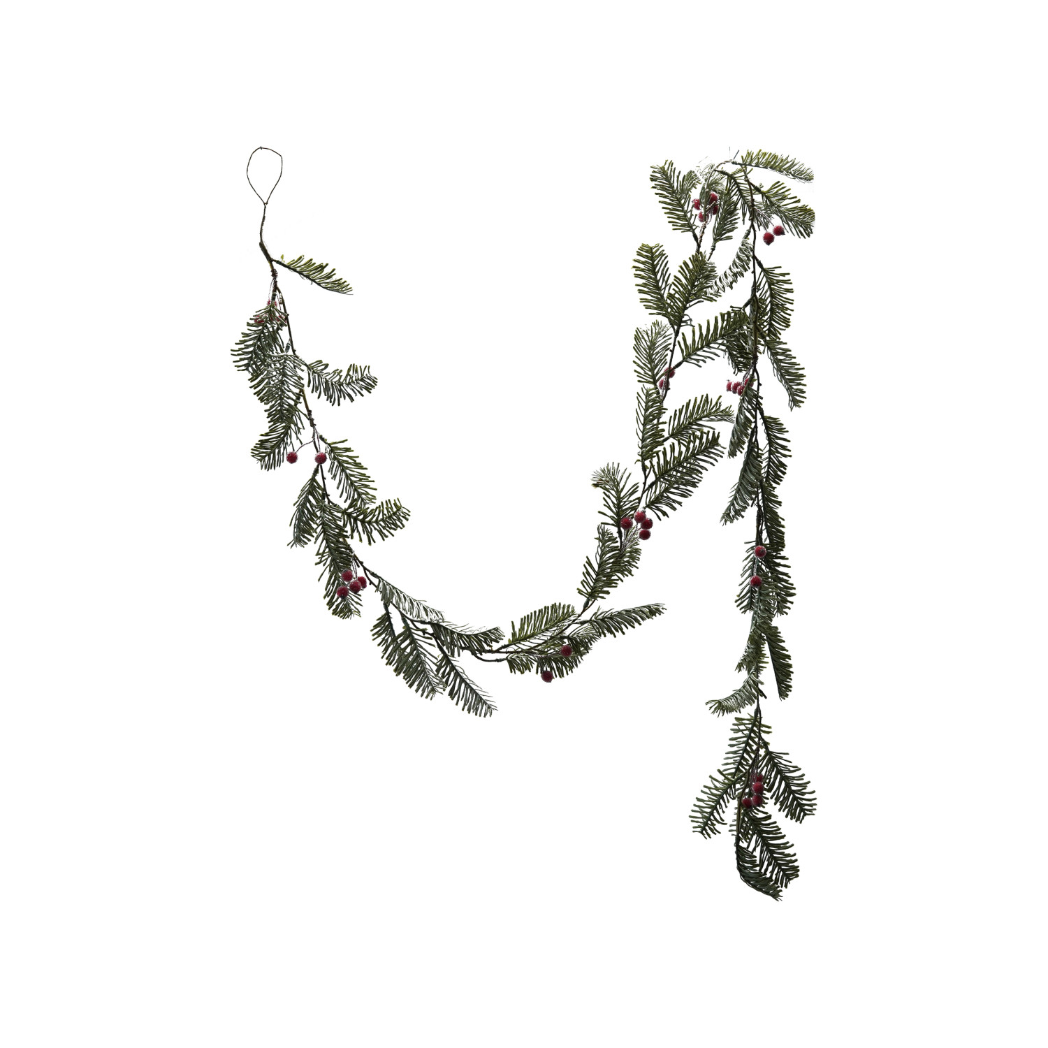 Catalog Name: 72"L x 8"H Faux Spruce Garland w/ Red Berries, Ice Finish
