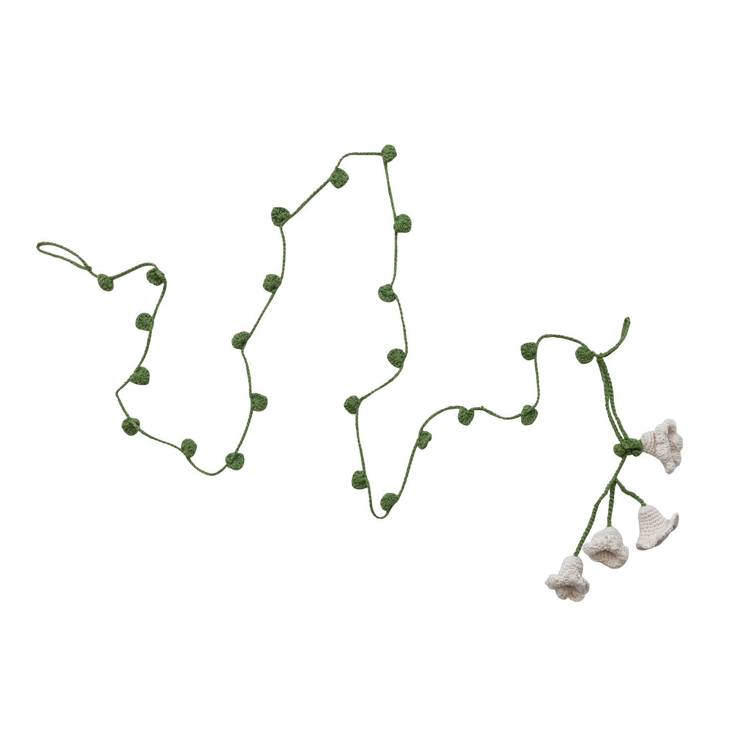 Catalog Name: 72"L x 1/2"H Cotton Crocheted Garland w/ Leaves & Flowers Bunch, Green & Natural