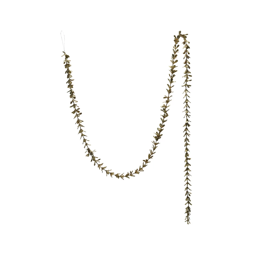 Catalog Name: 72"L x 1"H Faux Boxwood Garland w/ Glitter, Gold Finish