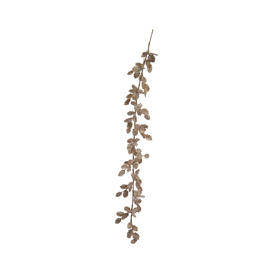 Catalog Name: 72"L x 8"H Fabric Leaf Garland w/ Beads & Glitter, Gold Color & Ice Finish