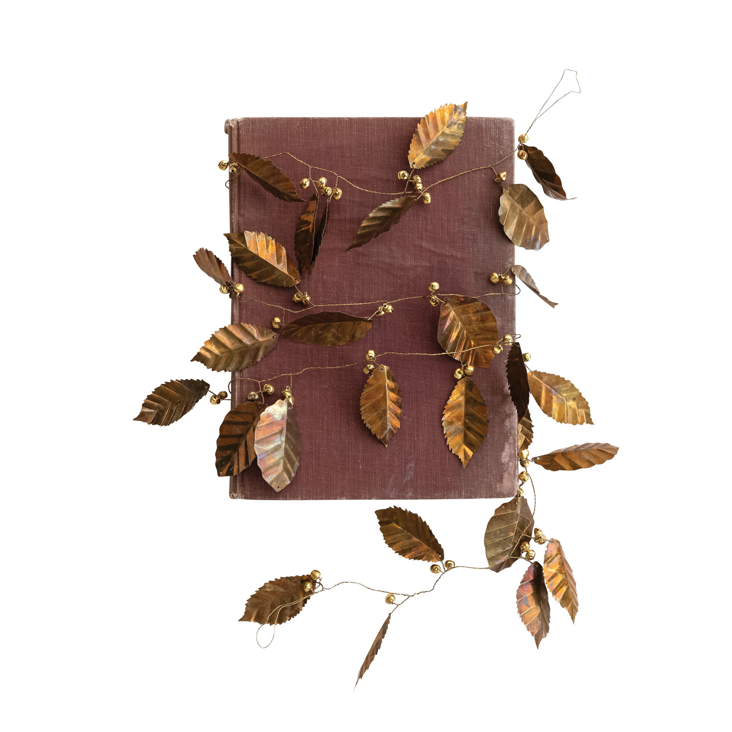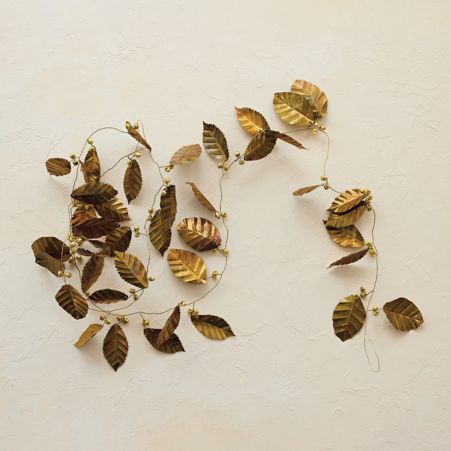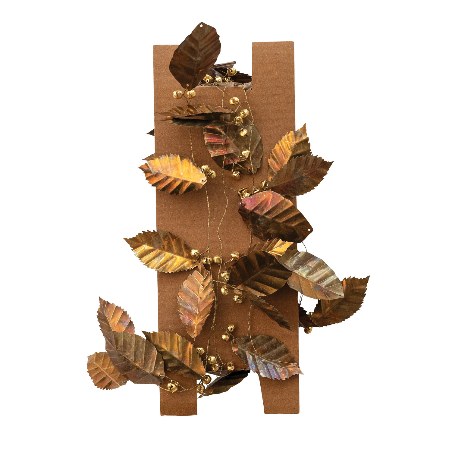 Metal Leaf Garland with Jingle Bells, Gold Finish