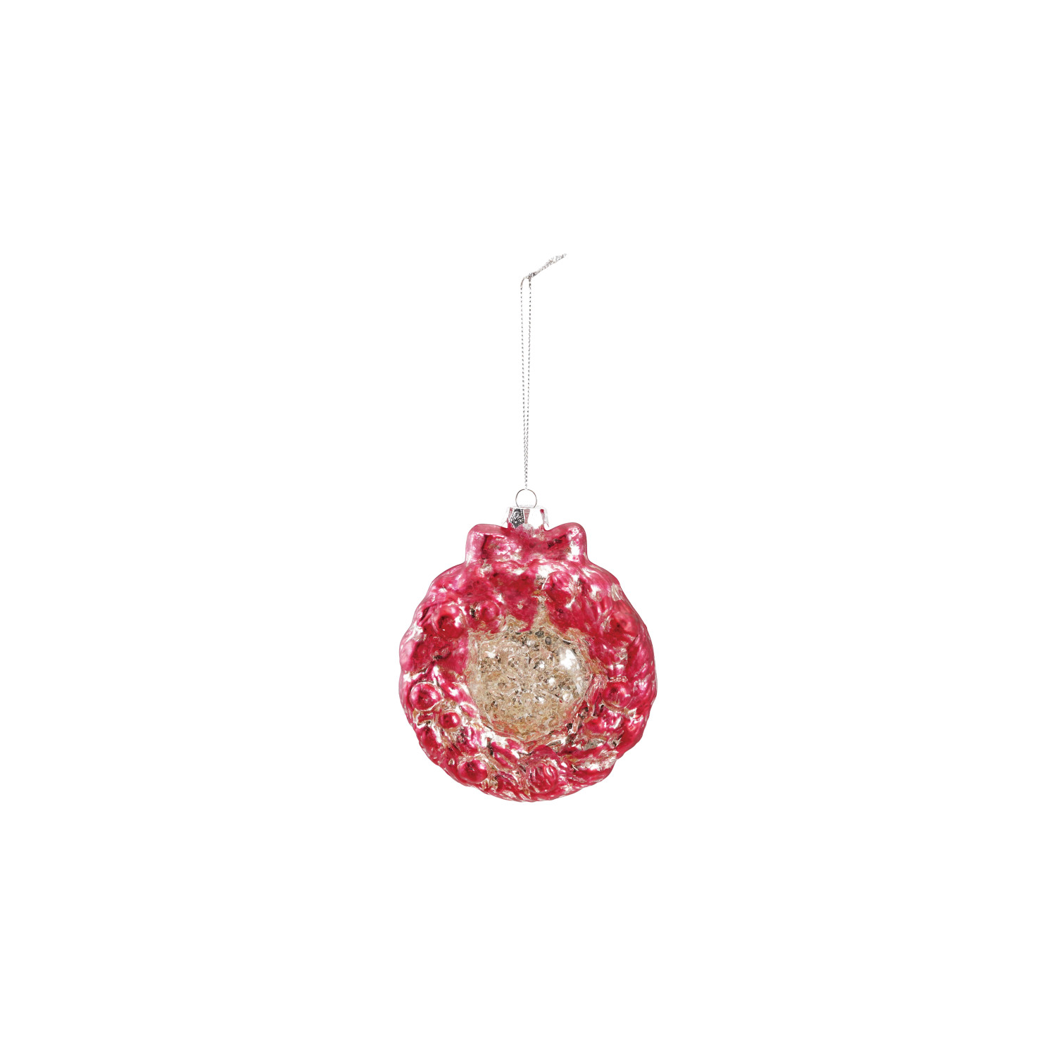 Catalog Name: 4-1/2"H Hand-Painted Mercury Glass Wreath Ornament, Red & Silver Finish