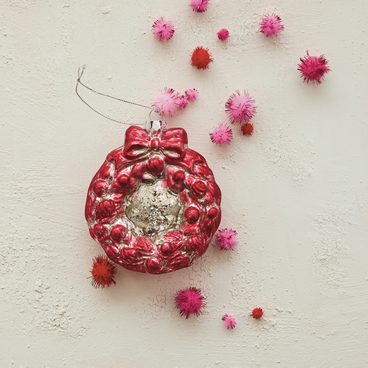 Hand-Painted Mercury Glass Wreath Ornament, Red & Silver Finish