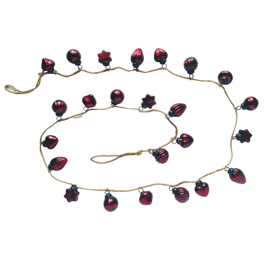 Embossed Mercury Glass Ornament Garland with Jute Cord, Burgundy