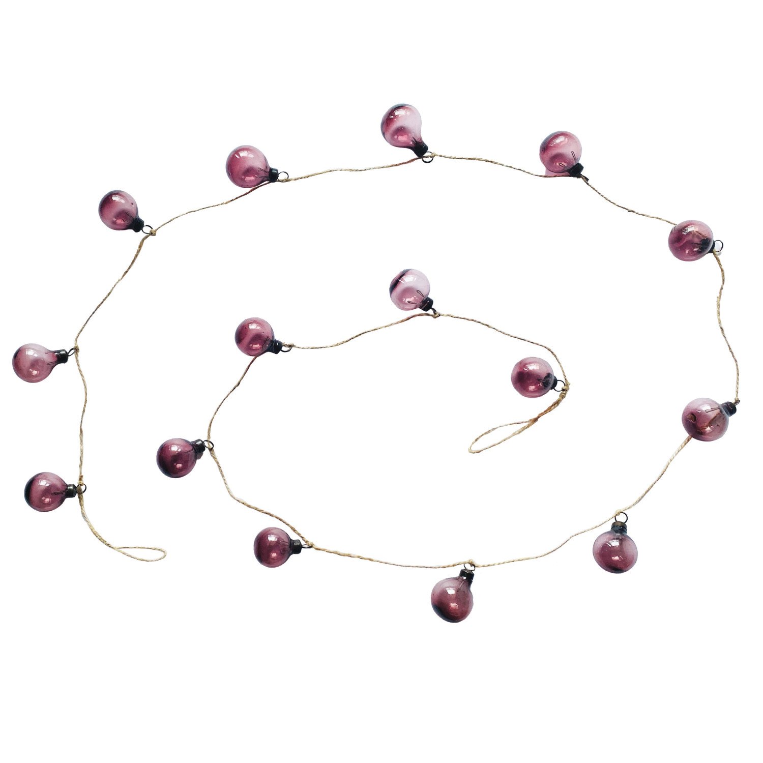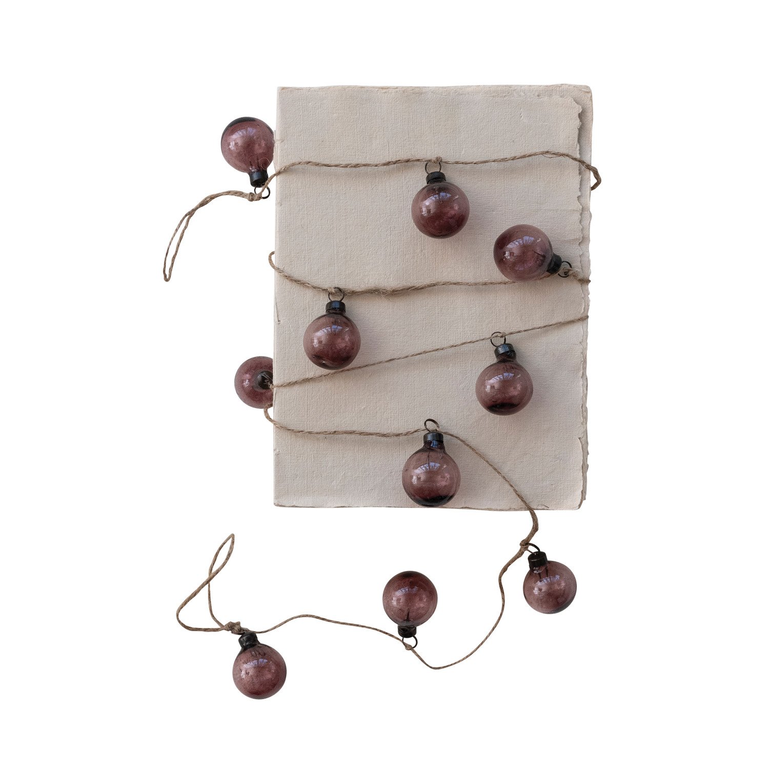 Hand-Blown Glass Ball Ornament Garland with Jute Cord, Plum Color