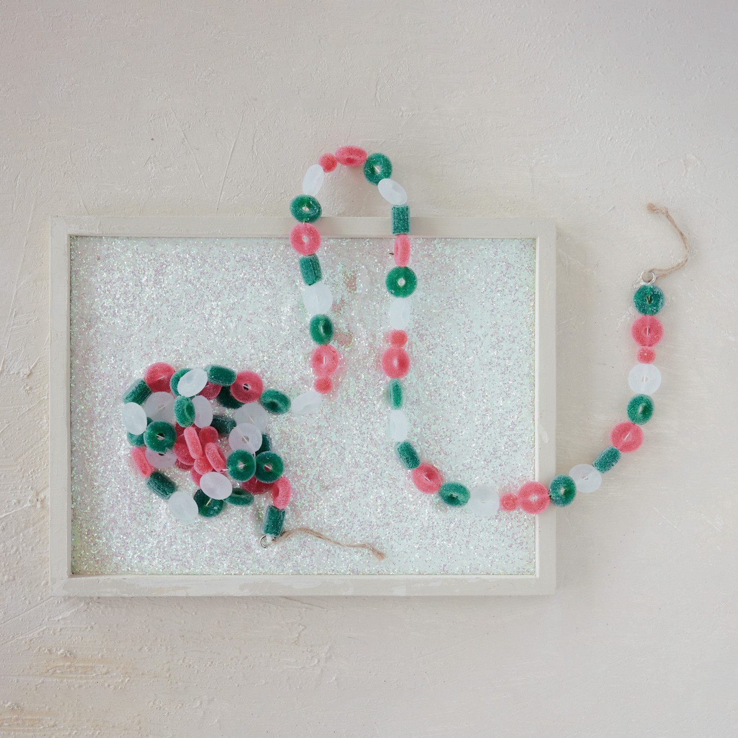 Catalog Name: 72"L x 1"H Plastic Candy Garland, Green, Red & White w/ Sugar
