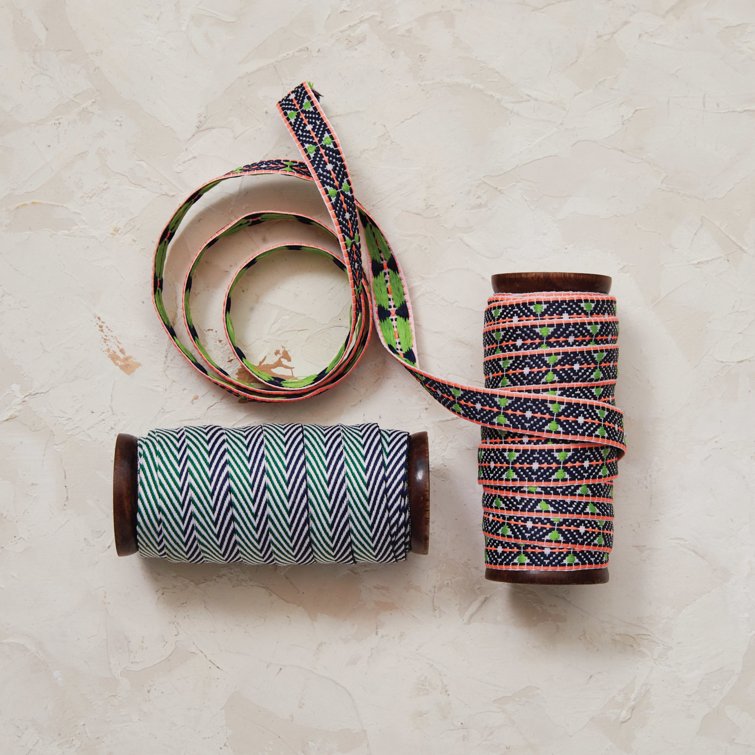 10 Yard Jacquard Fabric Ribbon w/ Pattern on Wood Spool, 2 Styles
