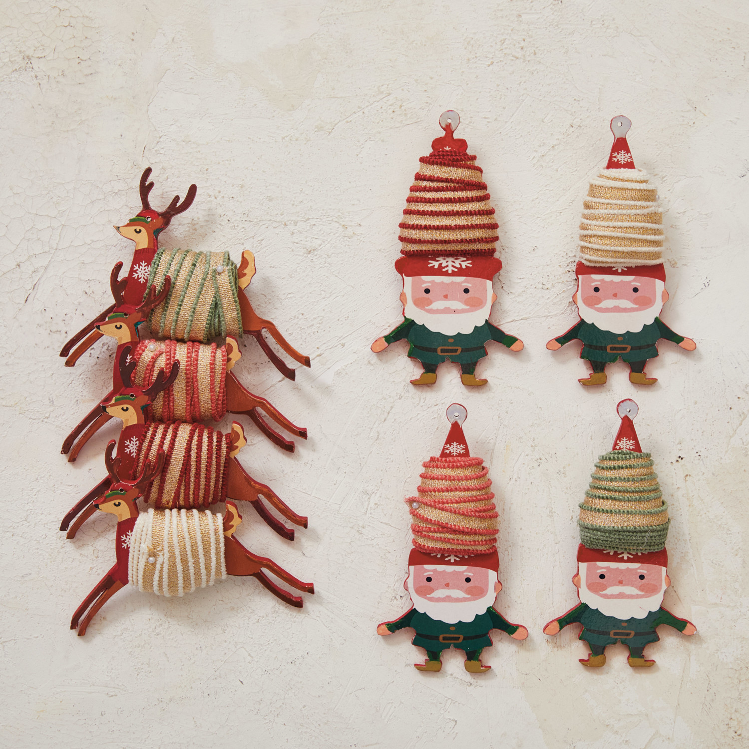 This set of 4 cotton ribbons with metallic gold thread on a gnome-shaped spool is a charming and creative addition to craft projects. Made from cotton and lurex, These ribbonss offer high-quality, flexible quality. Each ribbon features a different color, adding contrast and variety to the collection. The gnome-shaped spool, made of reclaimed wood, adds charm and personality to the ribbons. These versatile ribbons are perfect for wrapping gifts, making bows, decorating cards, or embellishing home accessories. They suit any occasion or theme and are perfect for wrapping gifts, making bows, decorating cards, or embellishing home accessories. It is a versatile addition to any craft project, adding depth and variety to the collection. Add some whimsy and sparkle to craft projects with this set of four cotton ribbon with metallic gold thread on gnome shaped spool that feature multicolor and a round shape. These ribbons are versatile and stylish for wrapping gifts, making bows, decorating cards, or embellishing home accessories, and they suit any occasion or theme. Each ribbon in the collection features a unique color and comes on a gnome-shaped spool, adding contrast and variety to the collection.
