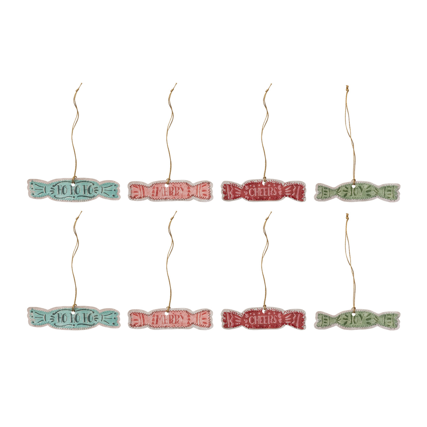 Catalog Name: 4"L Handmade Printed Recycled Paper Candy Gift Tags/Ornaments w/ Word & Stitching, Multi Color, Set of 8 ©