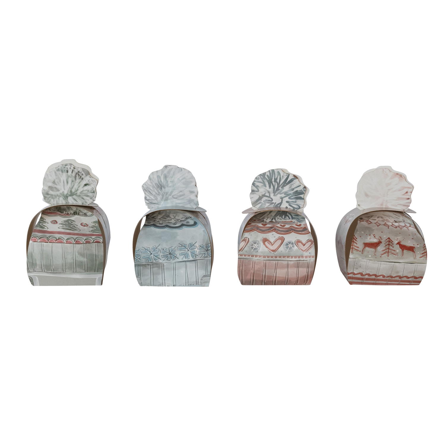 Handmade Folding Hat Shaped Gift Boxes with Holiday Pattern, Set of 4 ©
