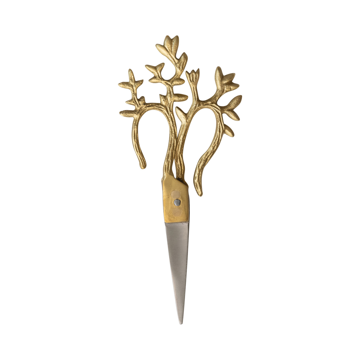 7"L x 3"W Brass & Stainless Steel Scissors with Vine Shaped Handles
