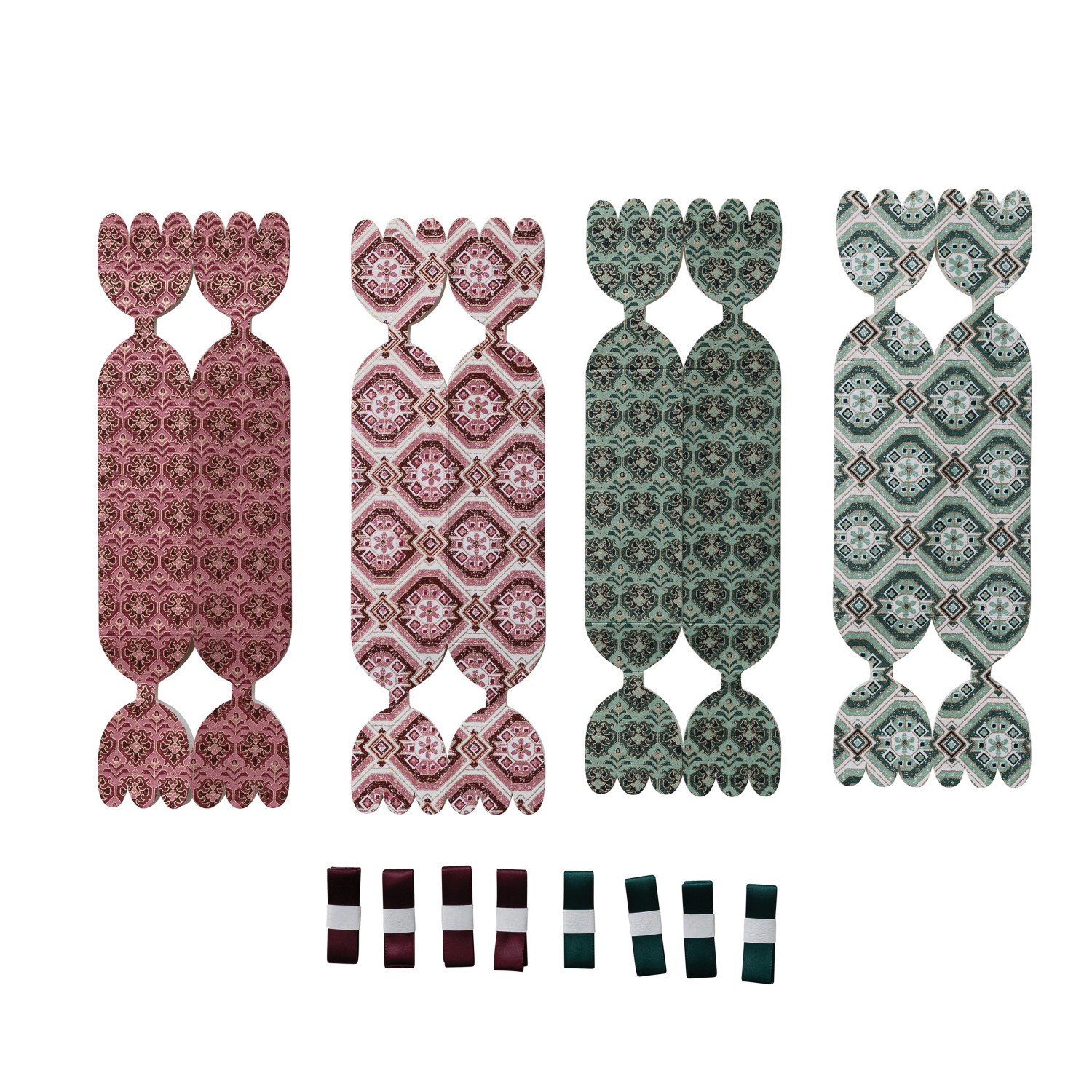 Catalog Name: 13-1/2"L x 2-1/2"W Handmade Recycled Block Printed Paper Candy Shaped Gift Box w/ Pattern & Ribbon Ties, Multi Color, 4 Styles