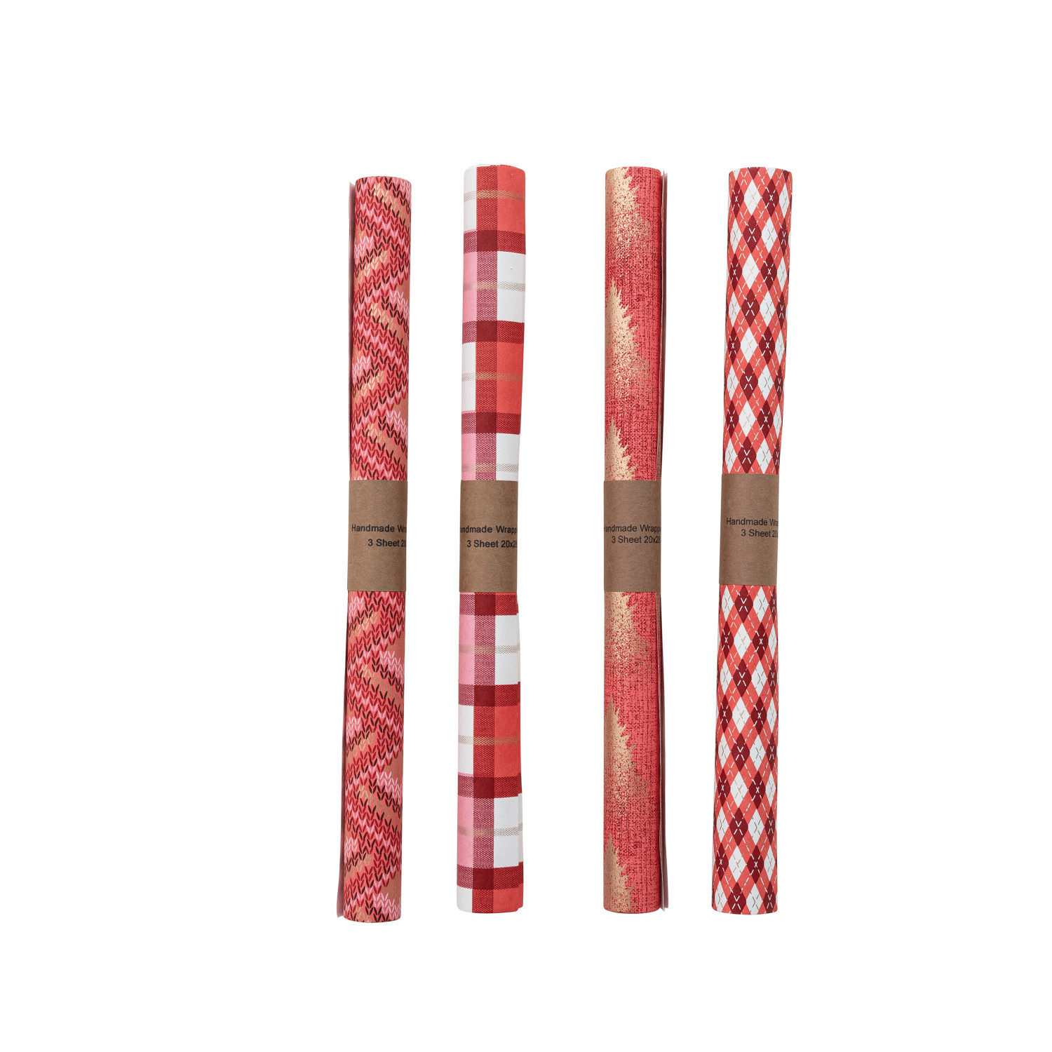 Catalog Name: 28"L x 20"W Handmade Printed Recycled Gift Wrapping Paper, Multi Color, 4 Styles (3 Sheets Per Roll) ©