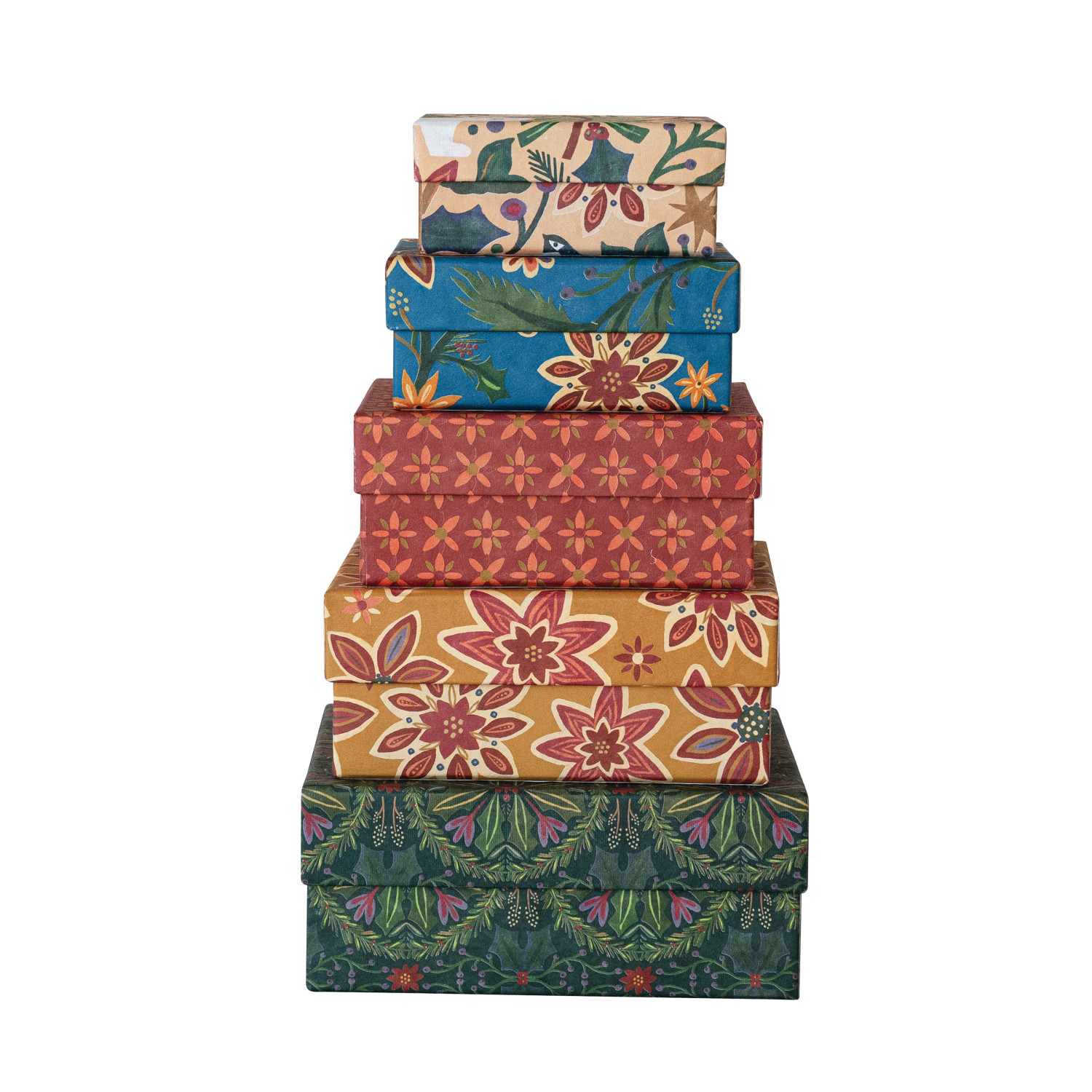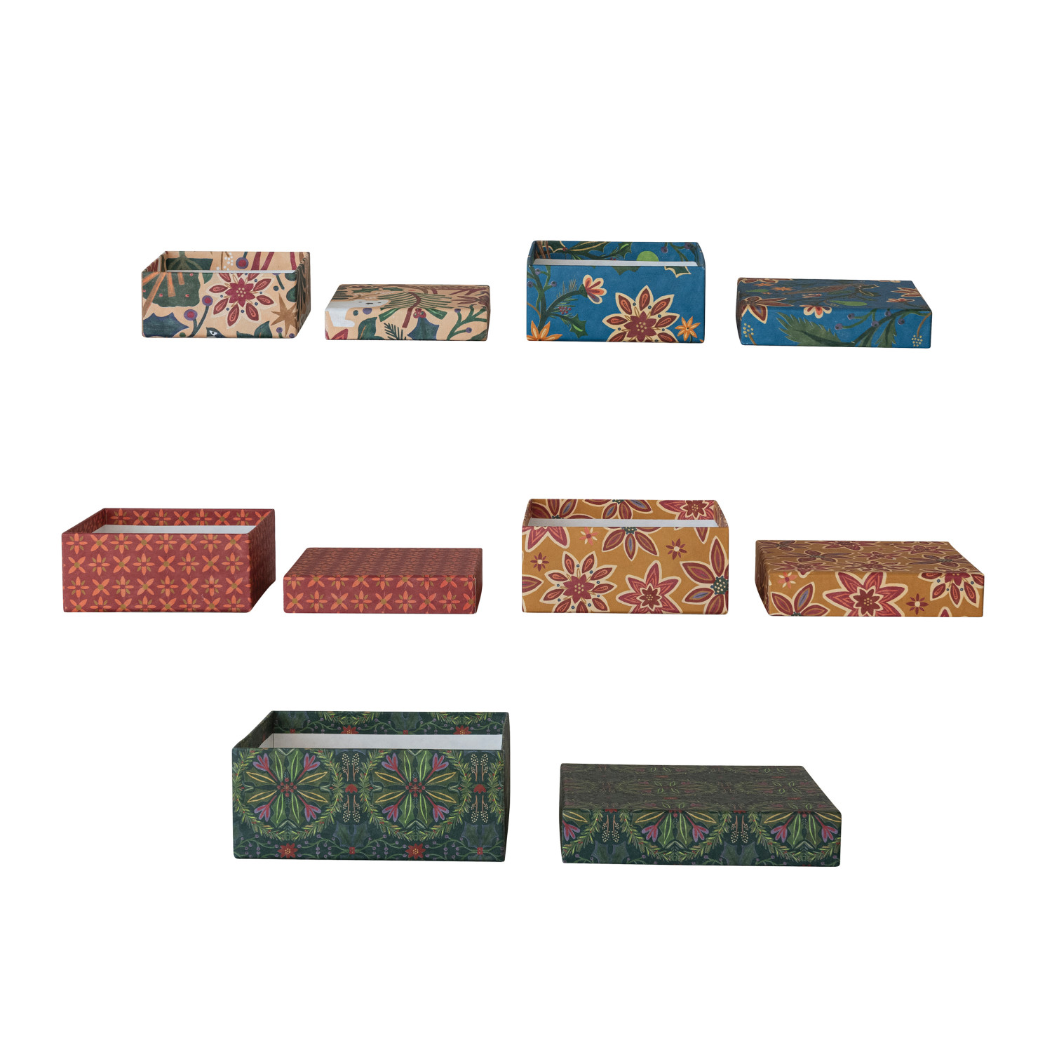 Handmade Printed Recycled Paper Gift Boxes with Patterns, Set of 5 ©