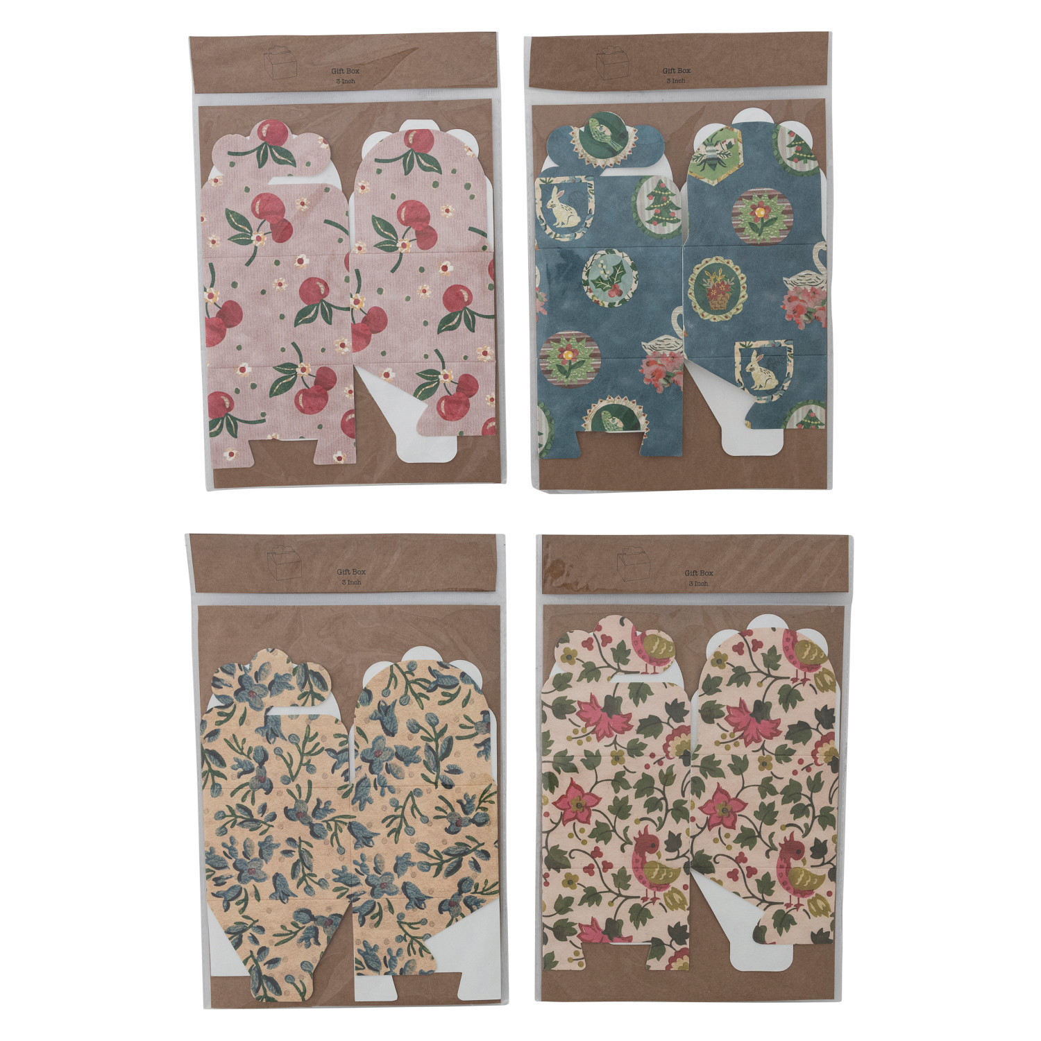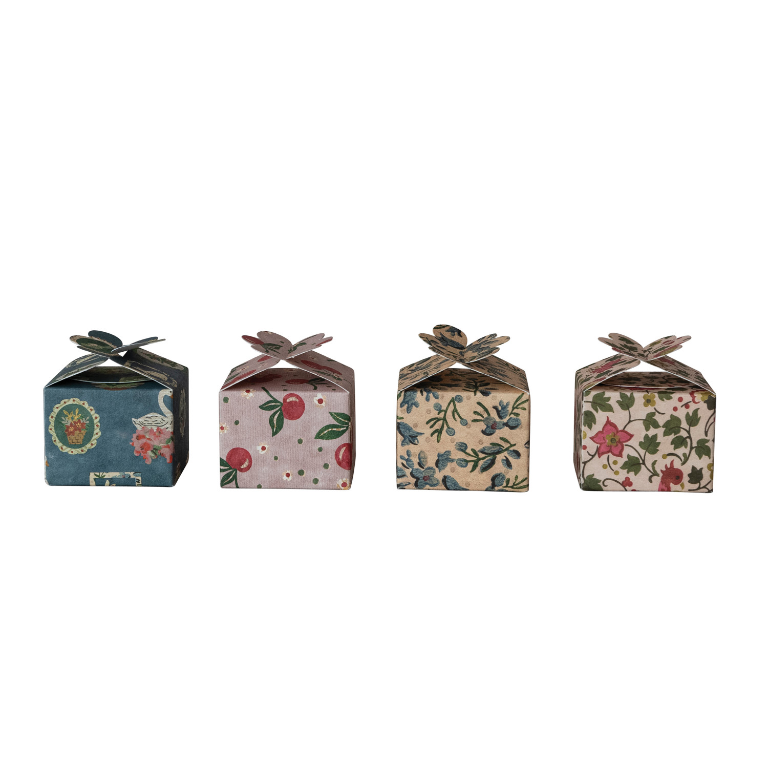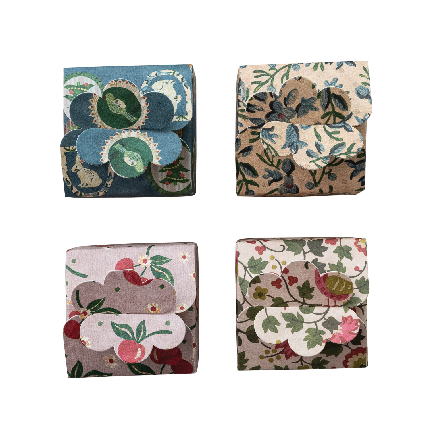Catalog Name: 4" Square x 3"H Handmade Printed Recycled Paper Interlocking Gift Box w/ Pattern, Multi Color, 4 Styles ©