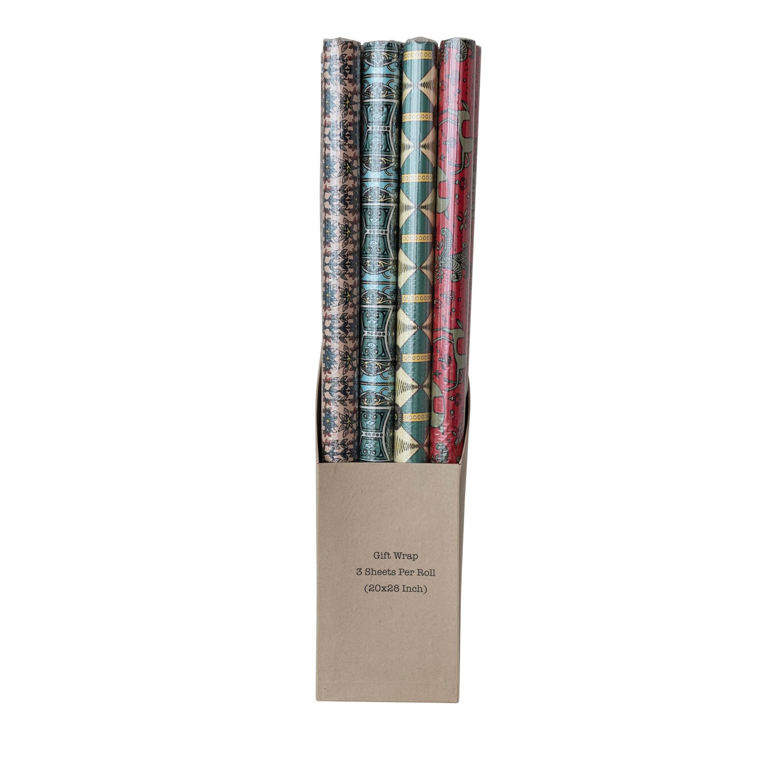 Wrapping Paper Sheets, Set of 12 in Box (4 Styles, 3 Rolls Per Style, 3 Sheets Per Roll) ©